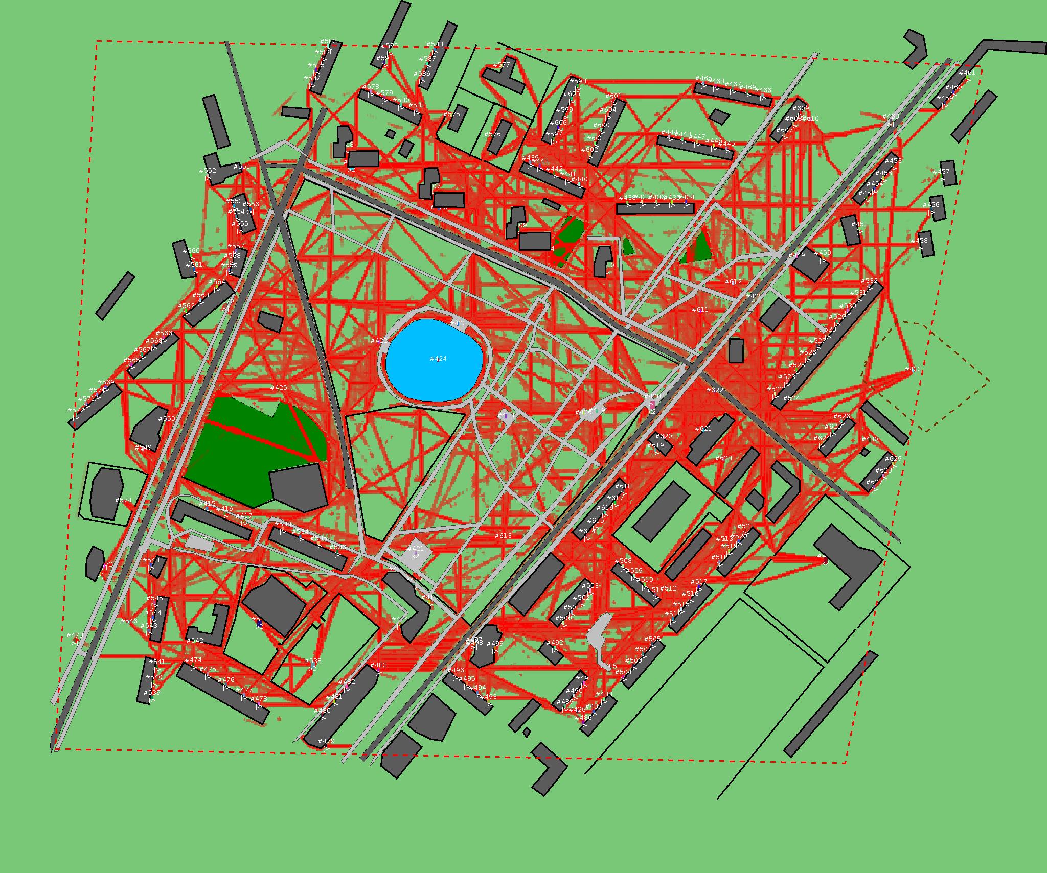 Красным цветом показаны места, где, вероятнее всего, появятся стихийные тропы..