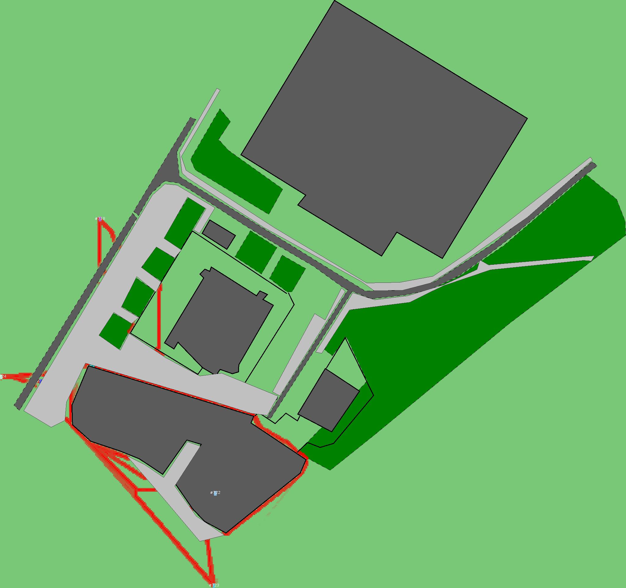 Красным цветом показаны места, где, вероятнее всего, появятся стихийные тропы..