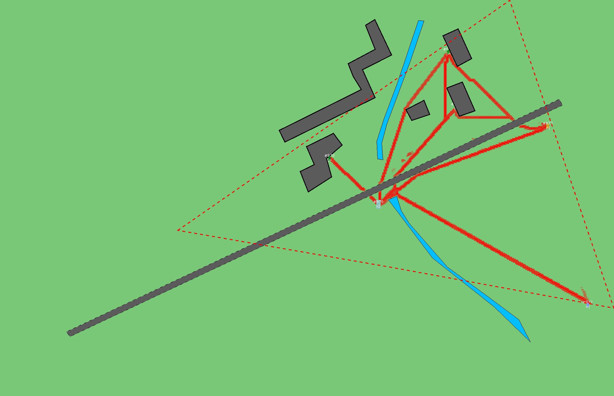 Красным цветом показаны места, где, вероятнее всего, появятся стихийные тропы..