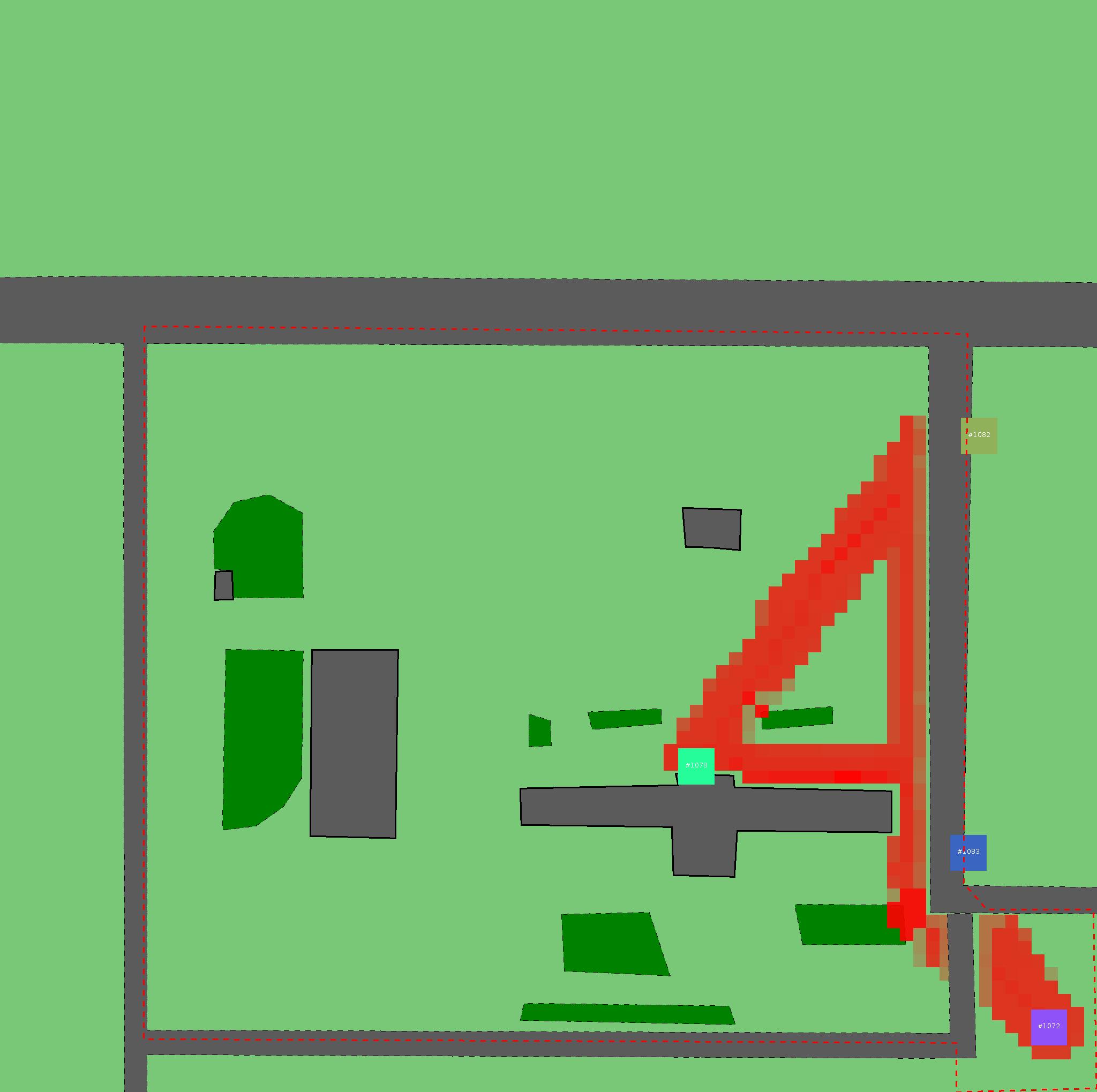 Красным цветом показаны места, где, вероятнее всего, появятся стихийные тропы..