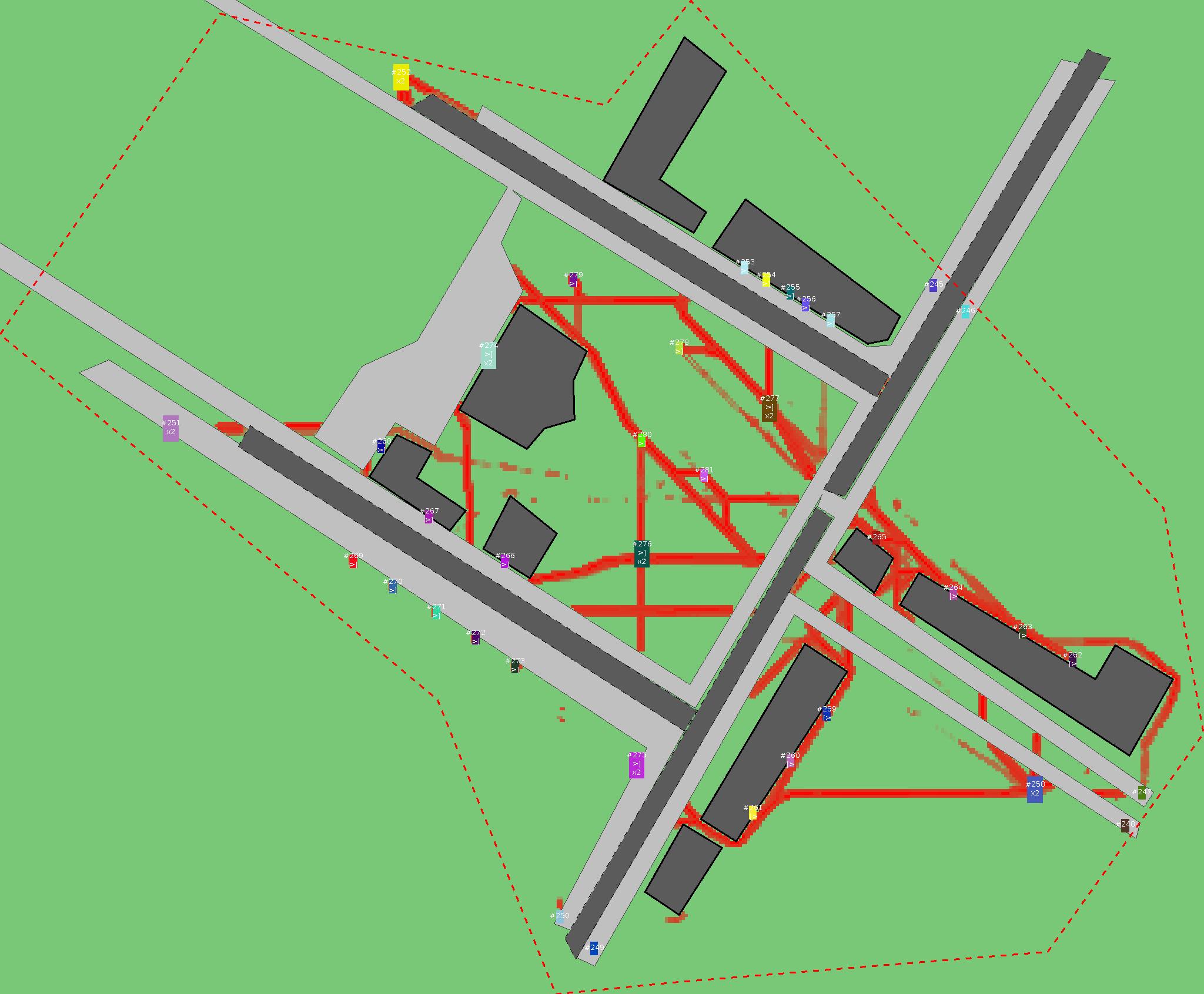 Красным цветом показаны места, где, вероятнее всего, появятся стихийные тропы..