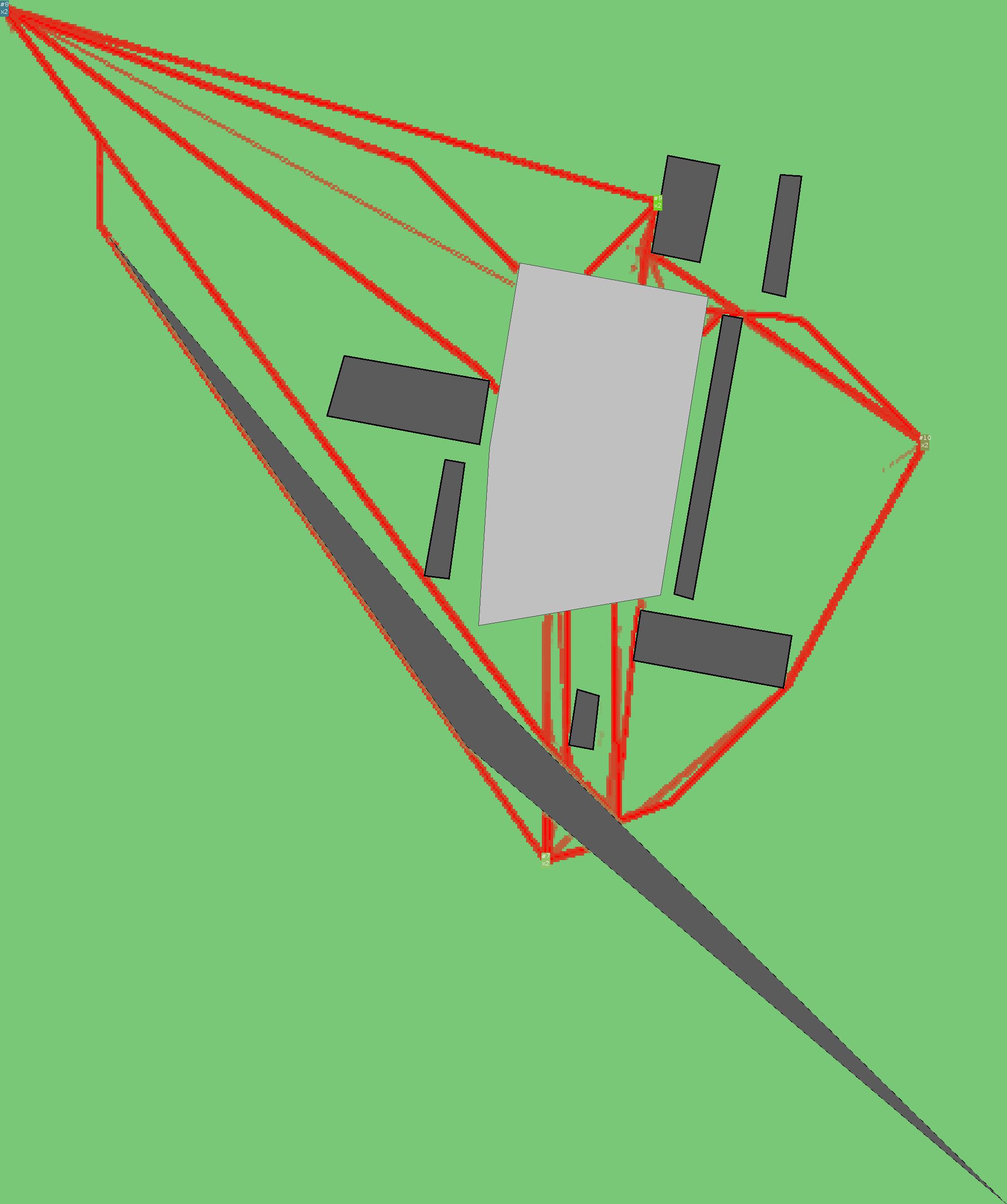 Красным цветом показаны места, где, вероятнее всего, появятся стихийные тропы..