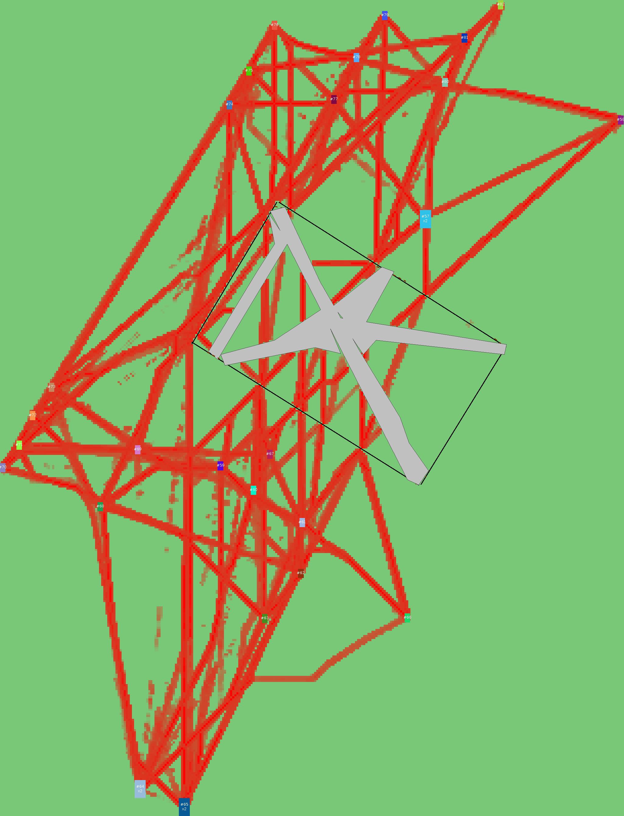 Красным цветом показаны места, где, вероятнее всего, появятся стихийные тропы..
