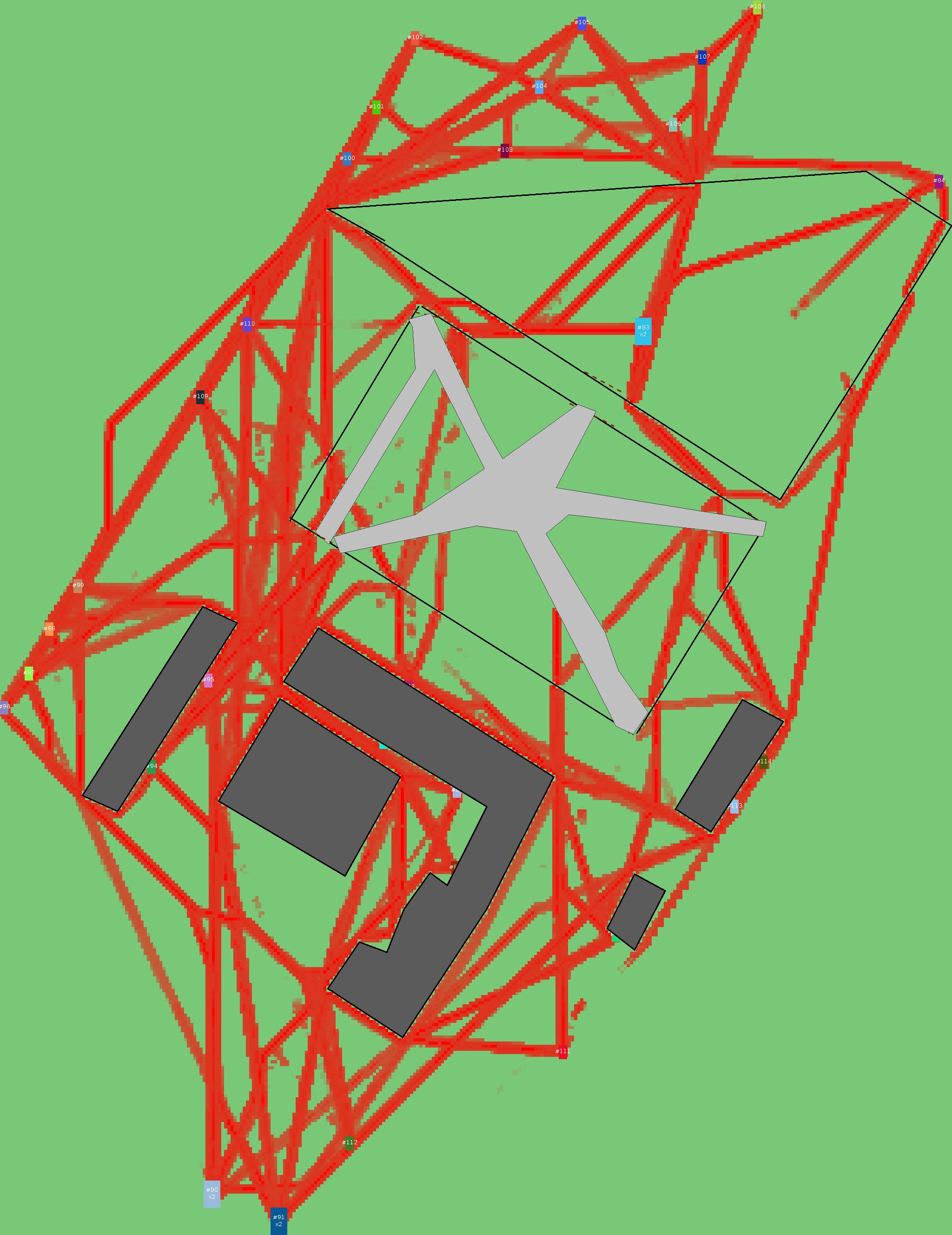 Красным цветом показаны места, где, вероятнее всего, появятся стихийные тропы..