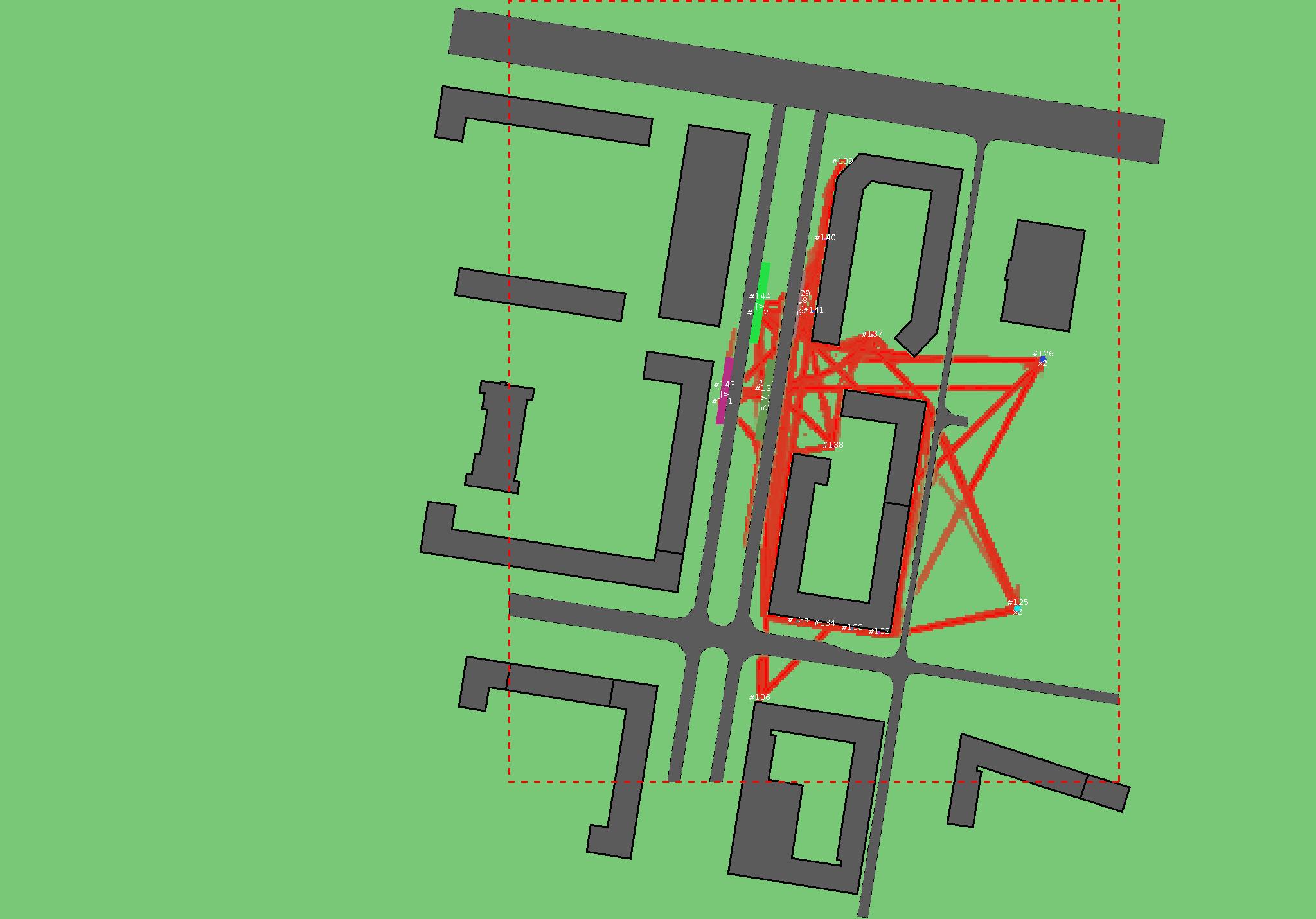 Красным цветом показаны места, где, вероятнее всего, появятся стихийные тропы..