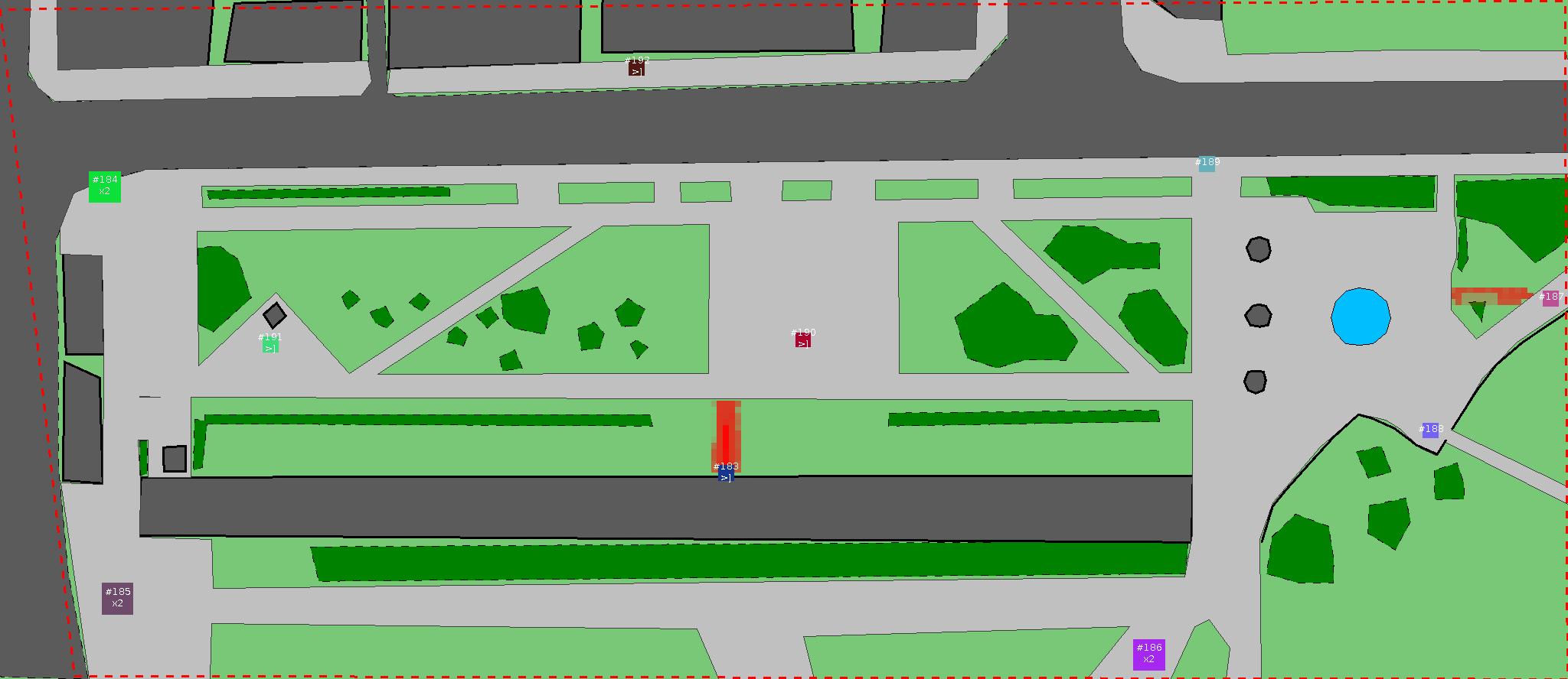 Красным цветом показаны места, где, вероятнее всего, появятся стихийные тропы..
