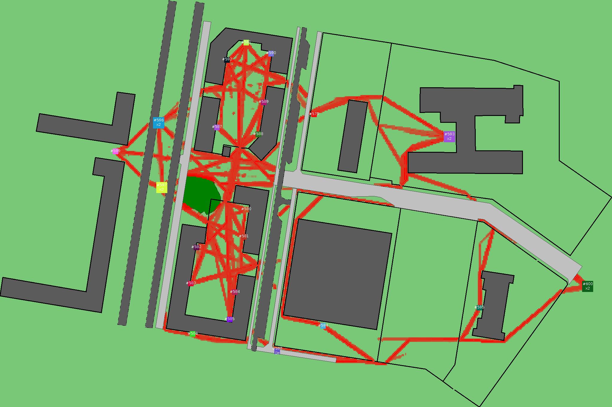 Красным цветом показаны места, где, вероятнее всего, появятся стихийные тропы..