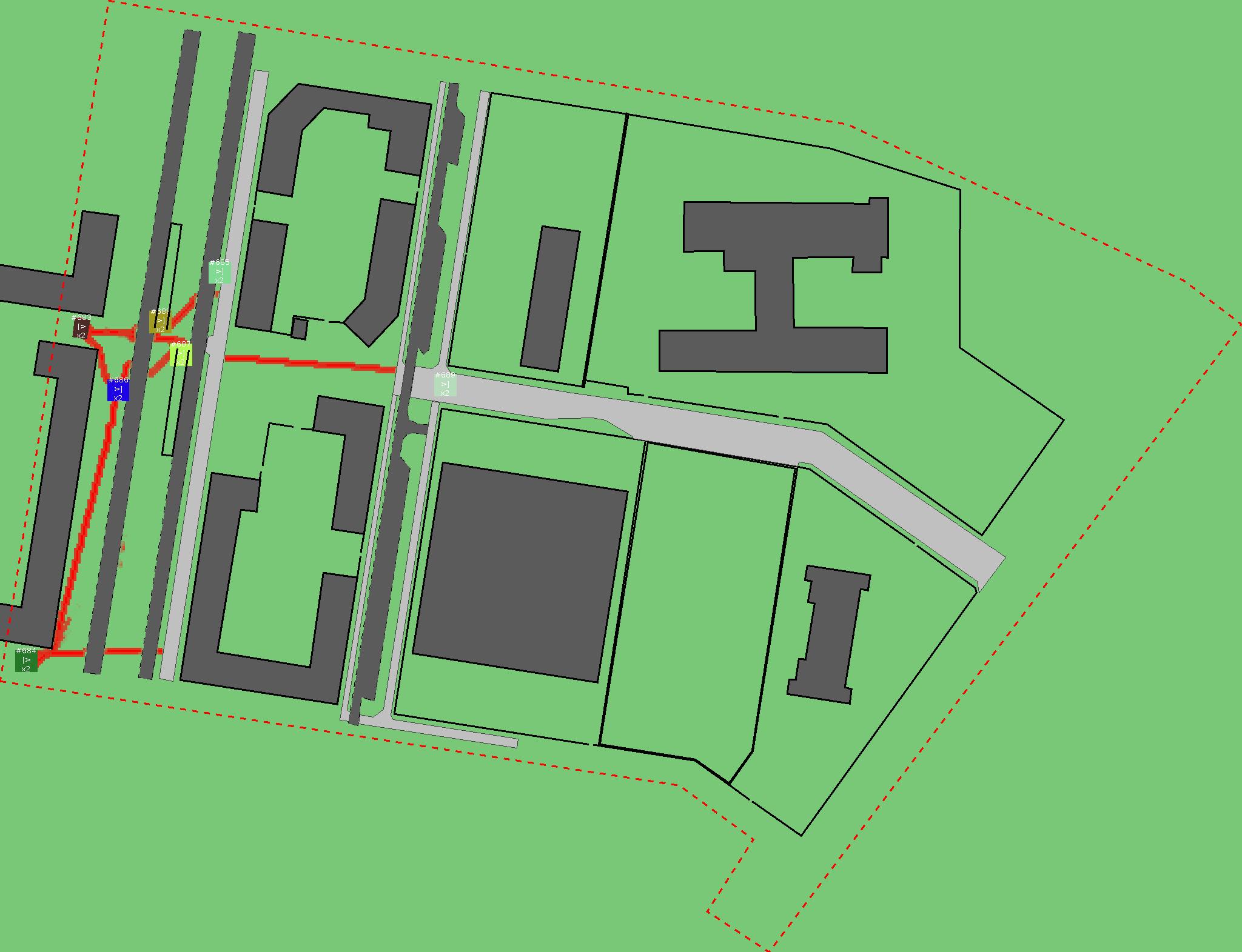 Красным цветом показаны места, где, вероятнее всего, появятся стихийные тропы..