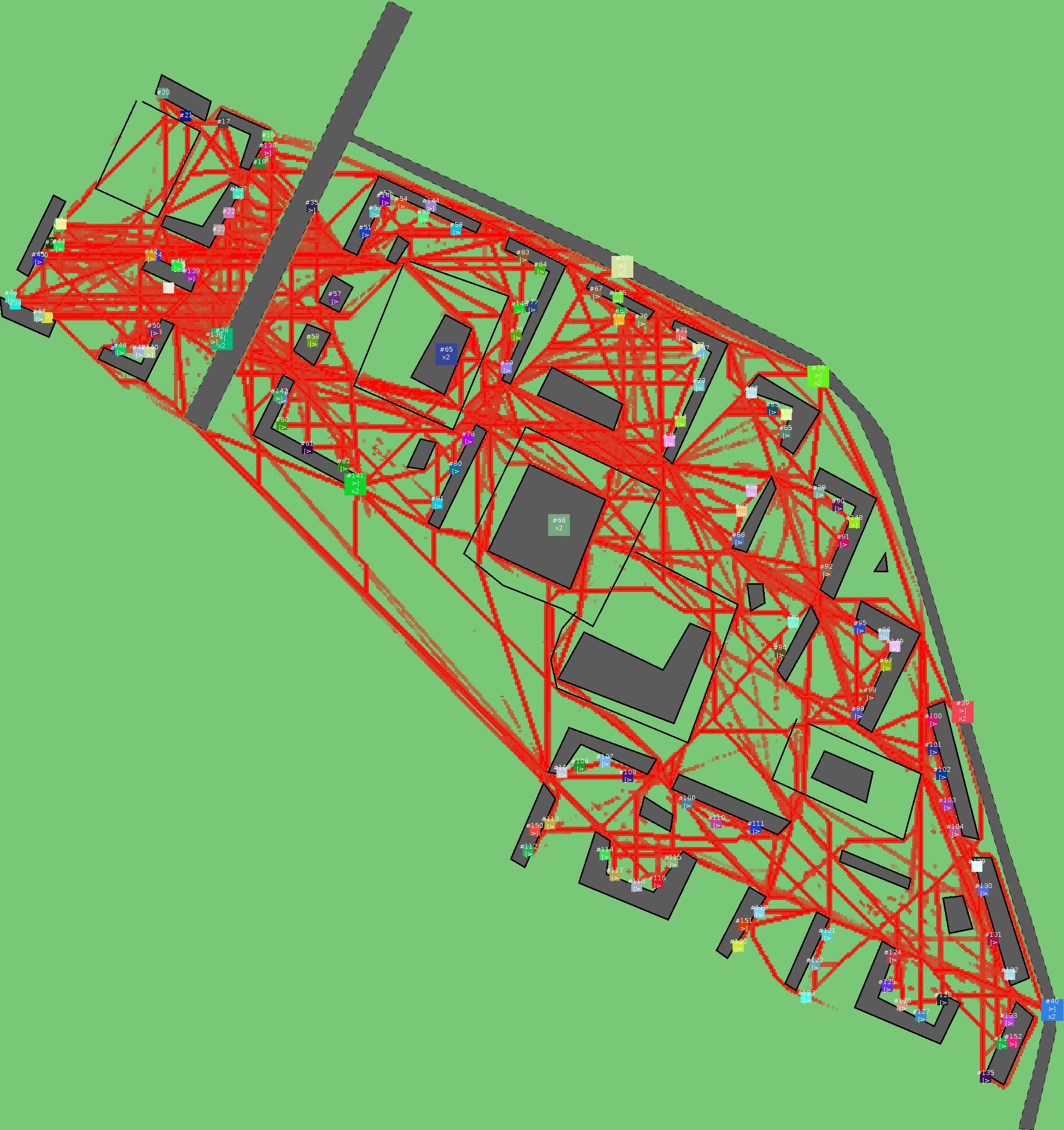 Красным цветом показаны места, где, вероятнее всего, появятся стихийные тропы..
