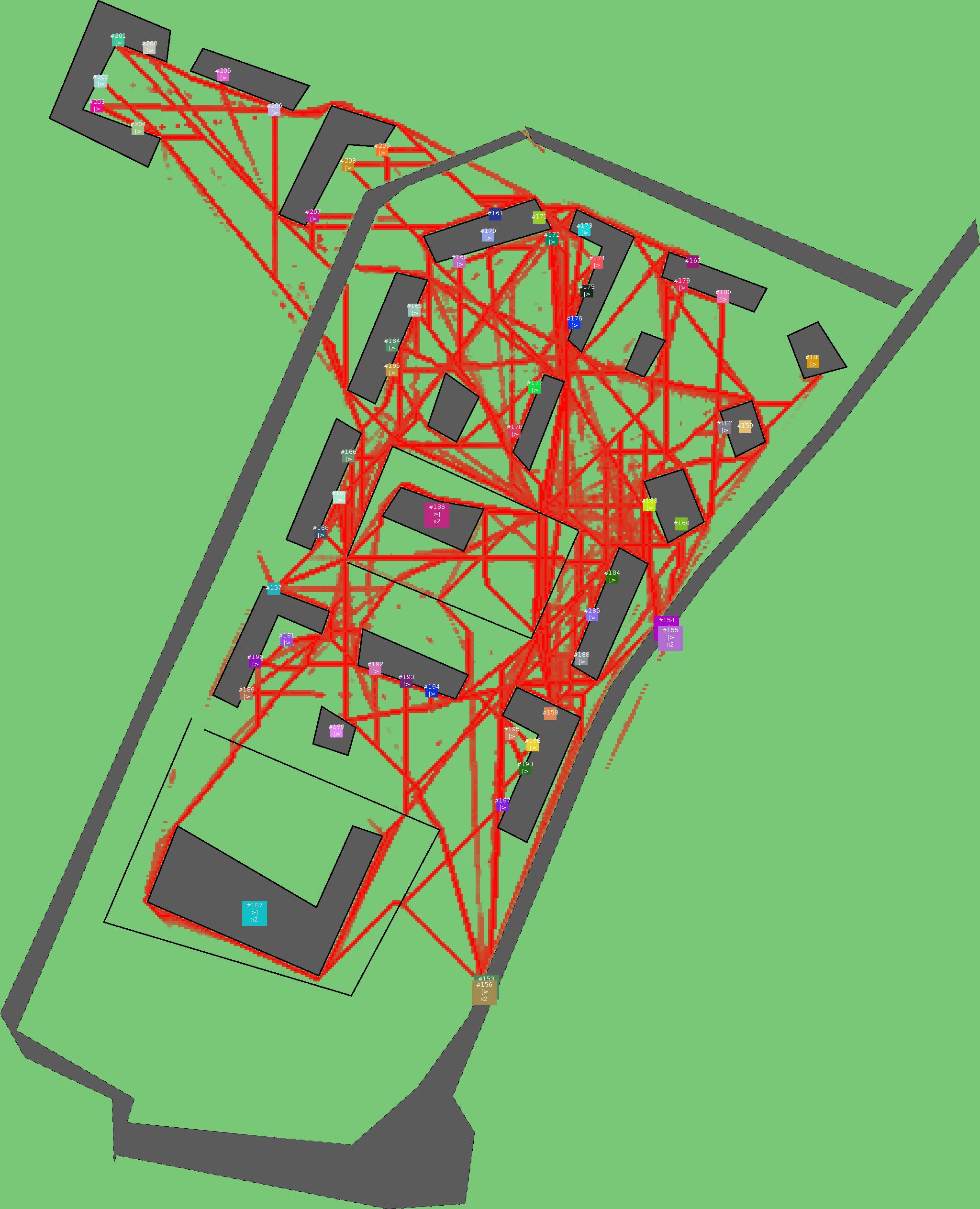 Красным цветом показаны места, где, вероятнее всего, появятся стихийные тропы..