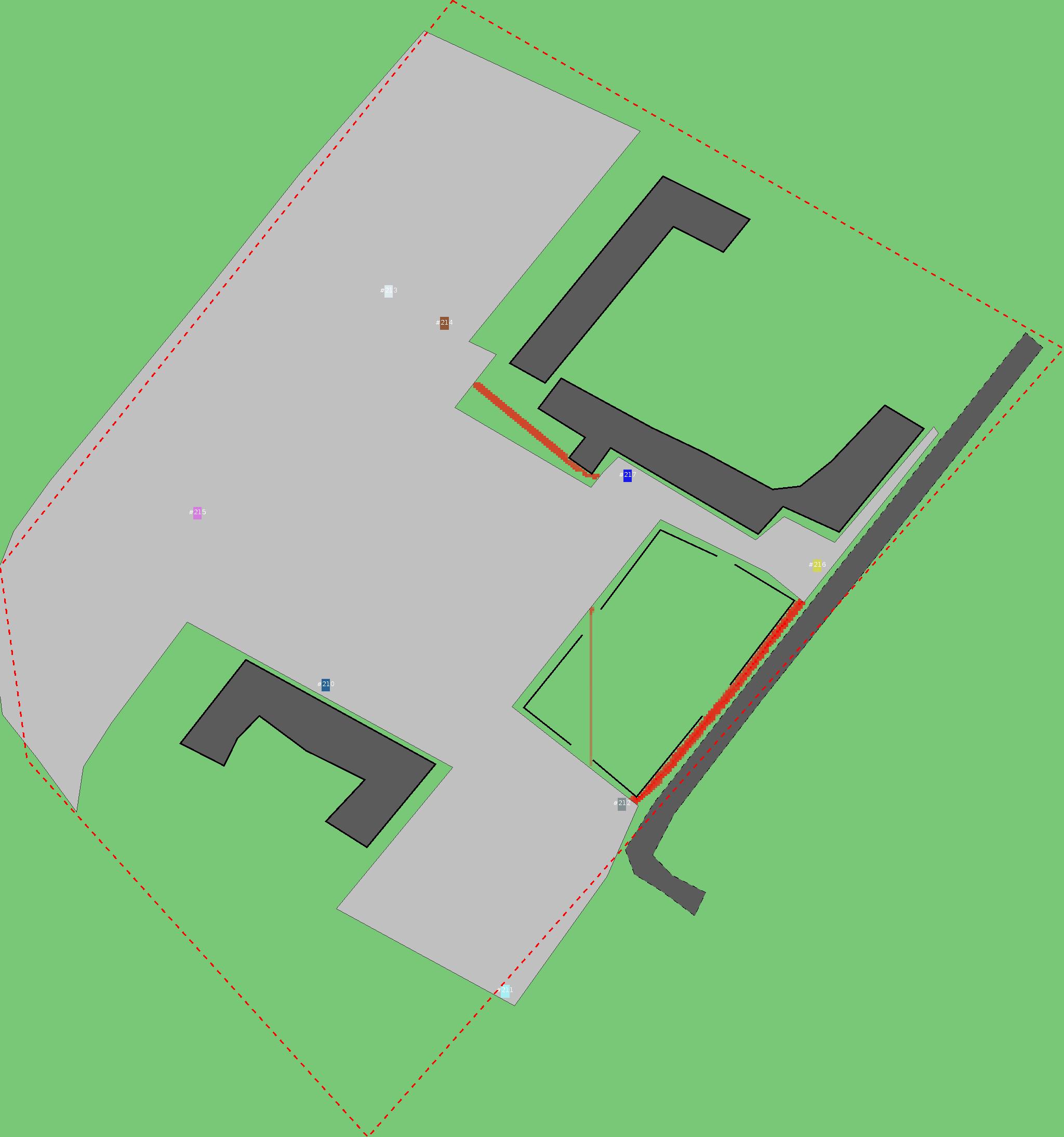 Красным цветом показаны места, где, вероятнее всего, появятся стихийные тропы..
