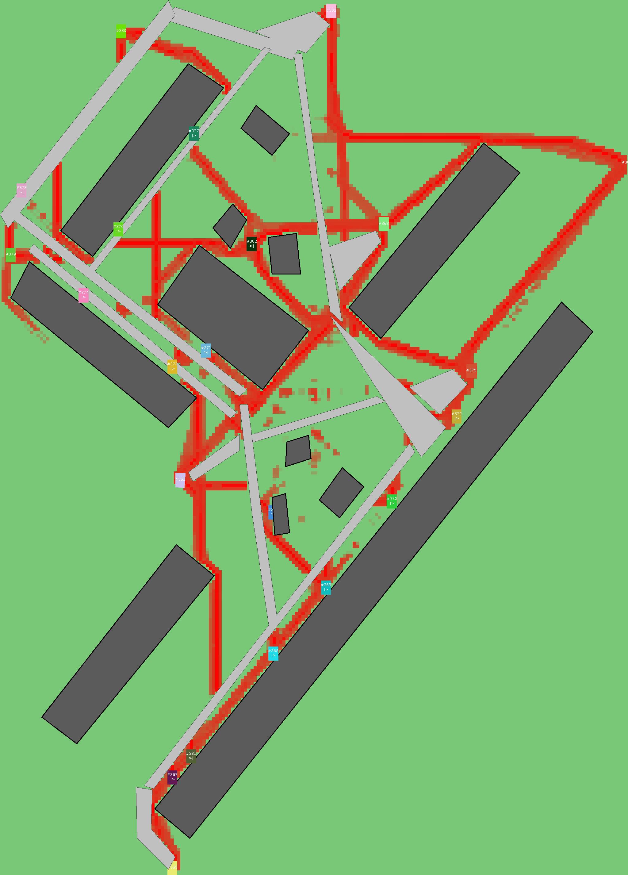 Красным цветом показаны места, где, вероятнее всего, появятся стихийные тропы..