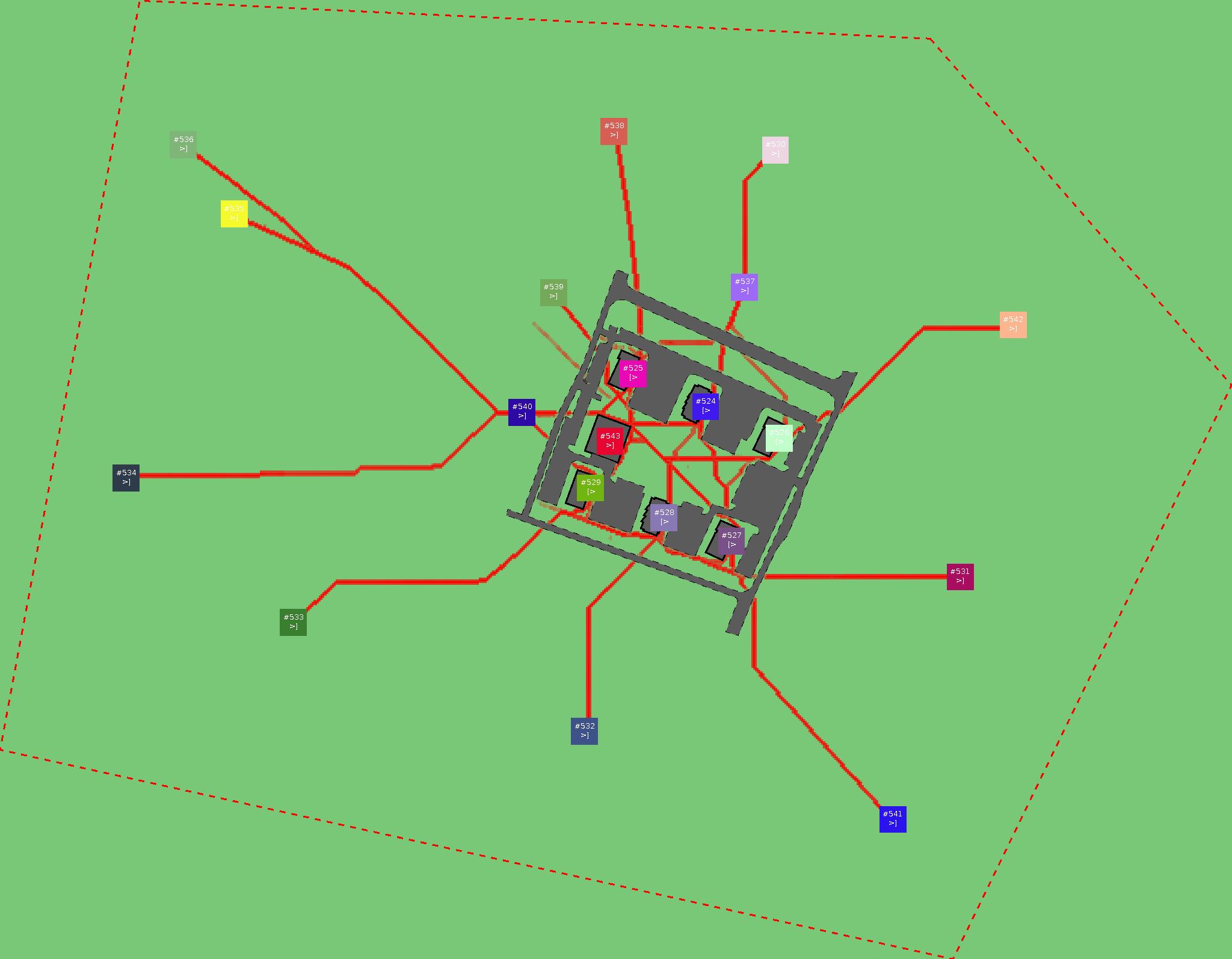 Красным цветом показаны места, где, вероятнее всего, появятся стихийные тропы..