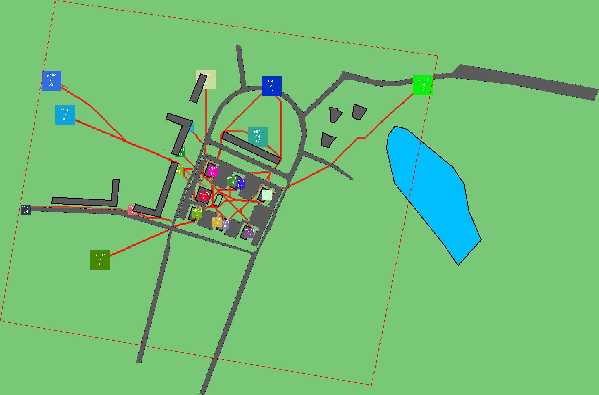 Красным цветом показаны места, где, вероятнее всего, появятся стихийные тропы..