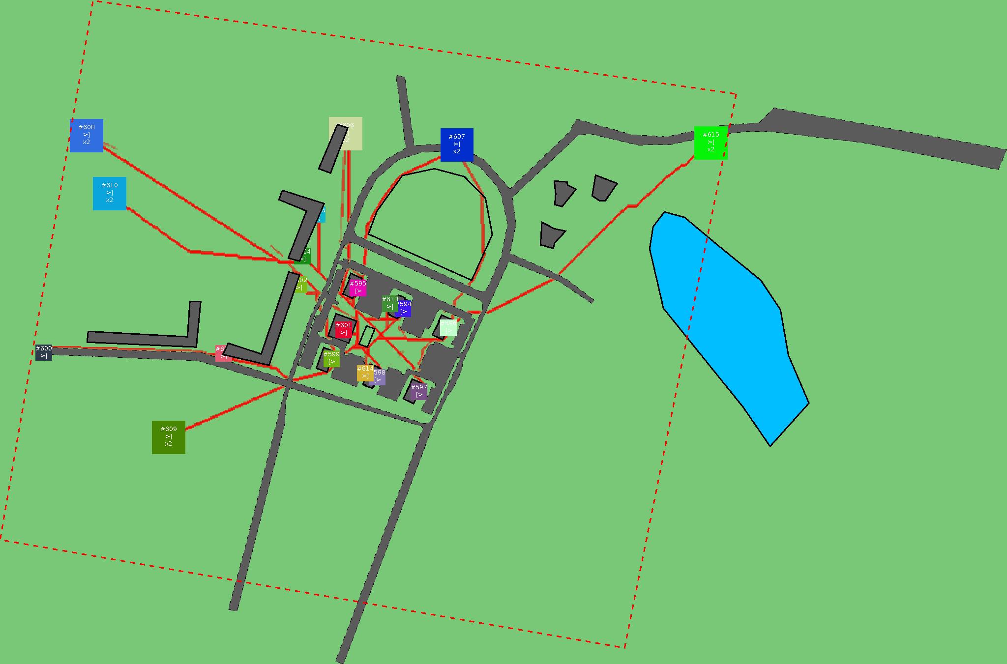 Красным цветом показаны места, где, вероятнее всего, появятся стихийные тропы..