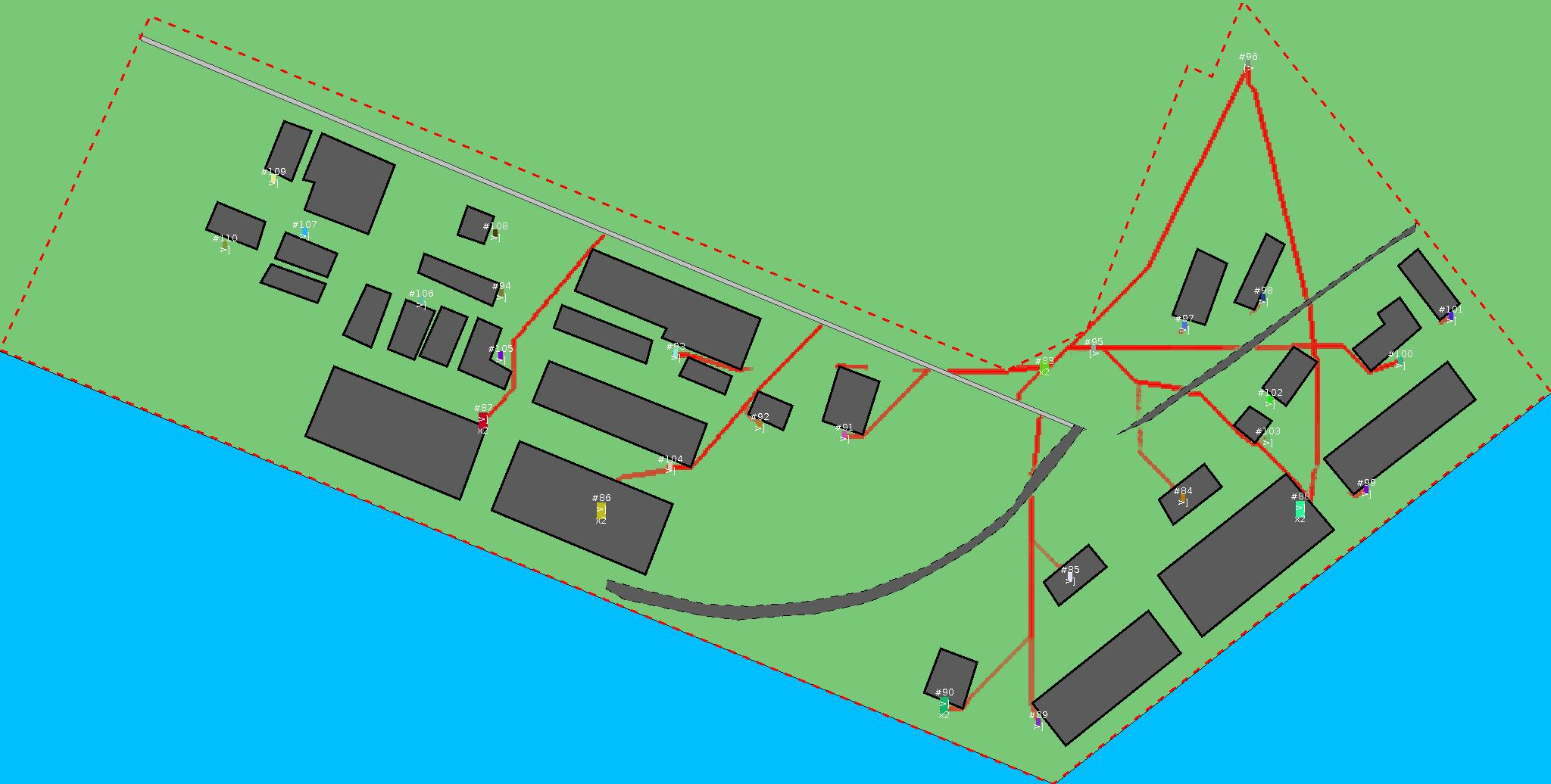 Красным цветом показаны места, где, вероятнее всего, появятся стихийные тропы..