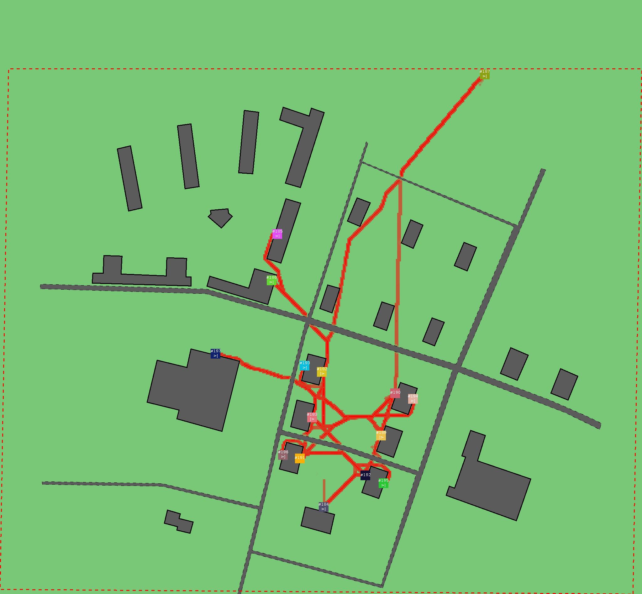 Красным цветом показаны места, где, вероятнее всего, появятся стихийные тропы..