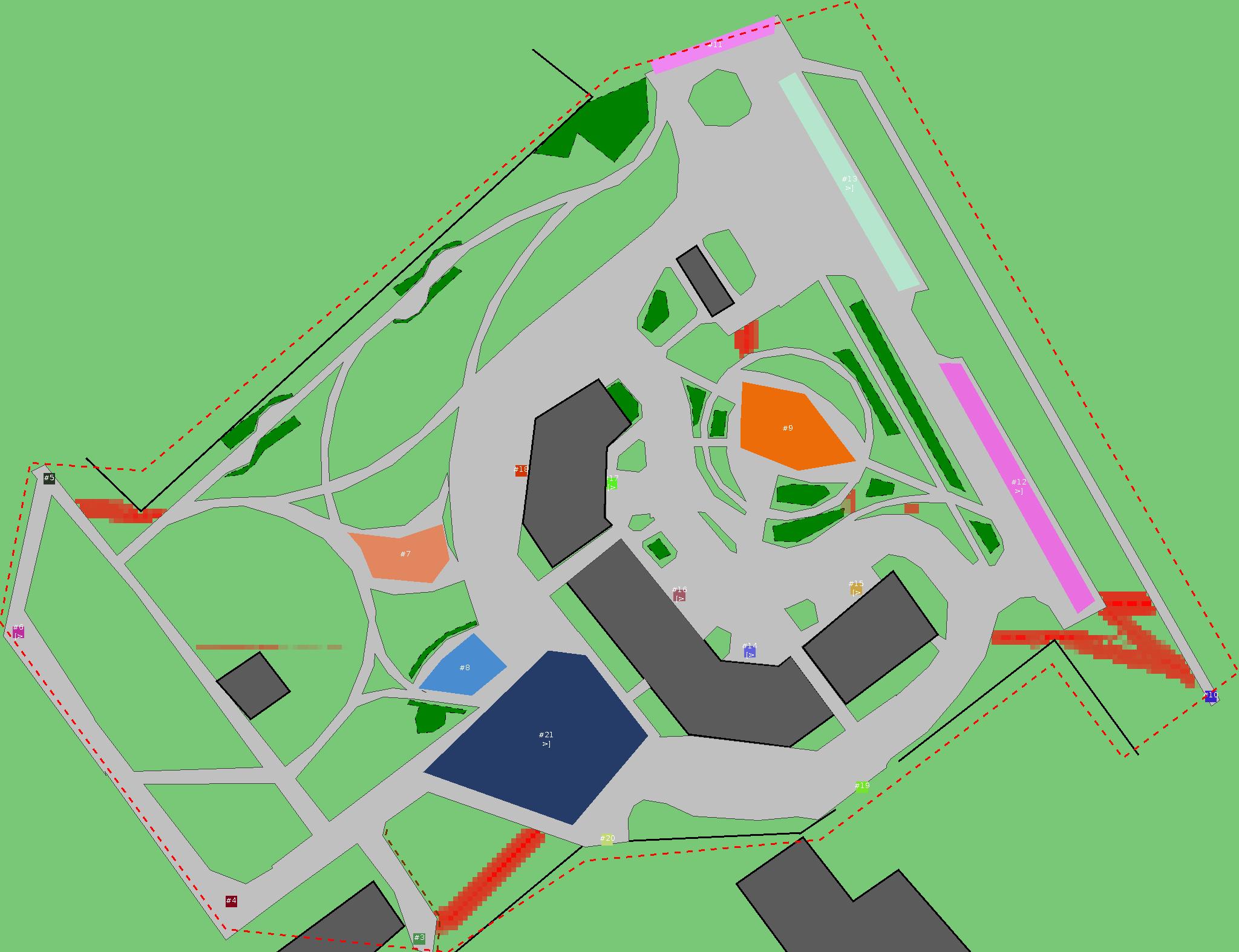 Красным цветом показаны места, где, вероятнее всего, появятся стихийные тропы..
