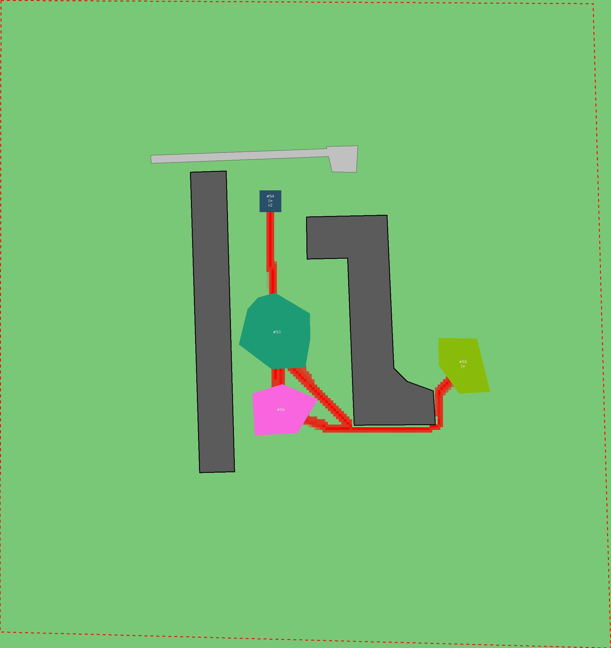 Красным цветом показаны места, где, вероятнее всего, появятся стихийные тропы..