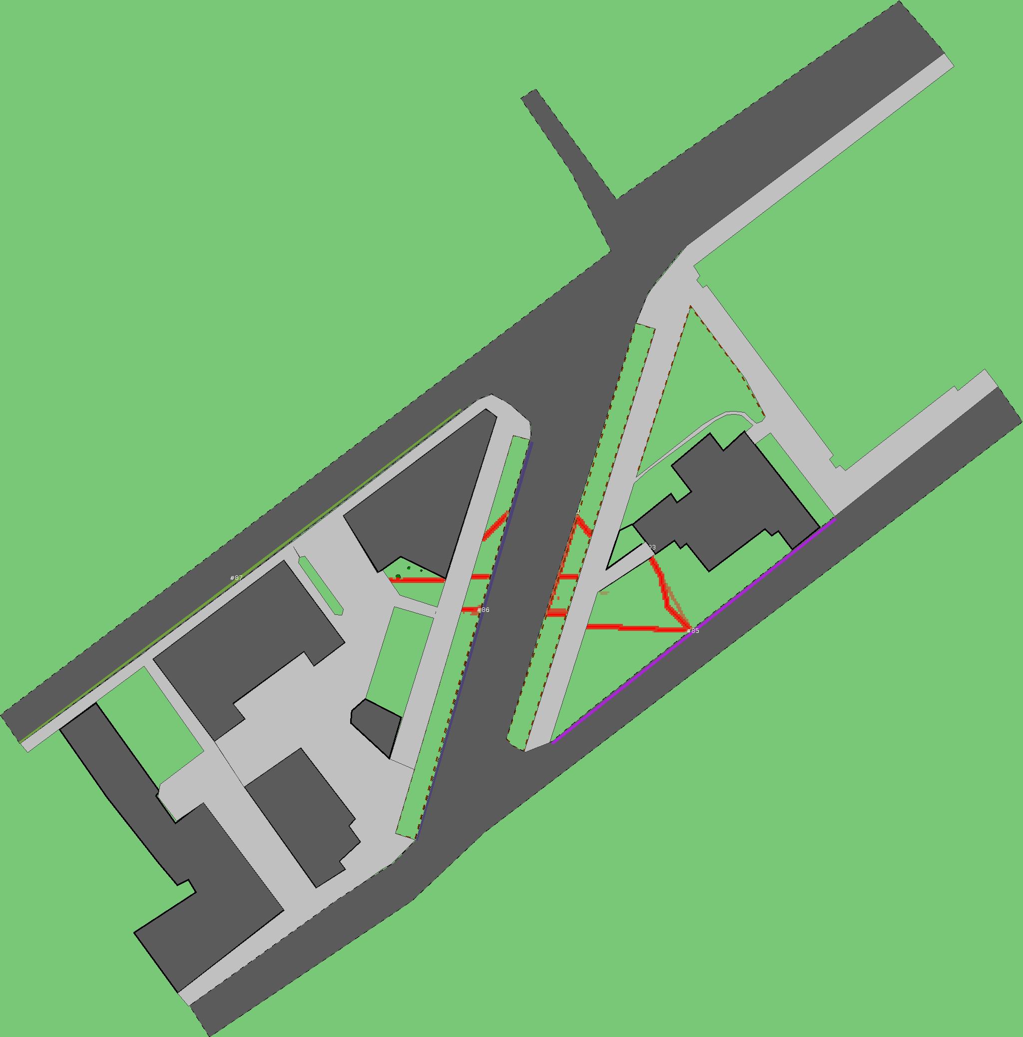 Красным цветом показаны места, где, вероятнее всего, появятся стихийные тропы..