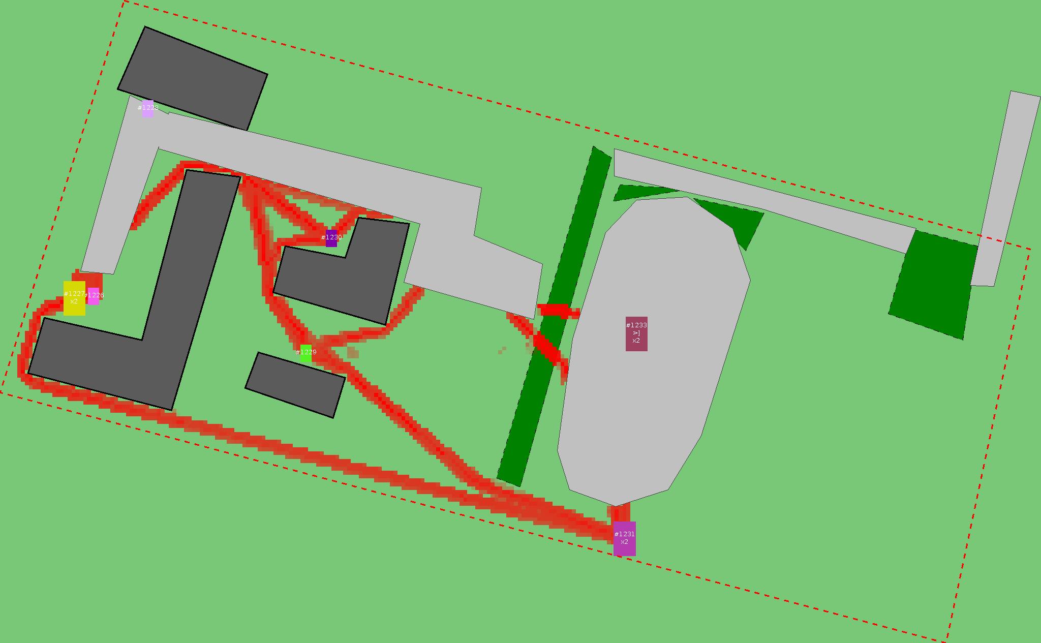 Красным цветом показаны места, где, вероятнее всего, появятся стихийные тропы..