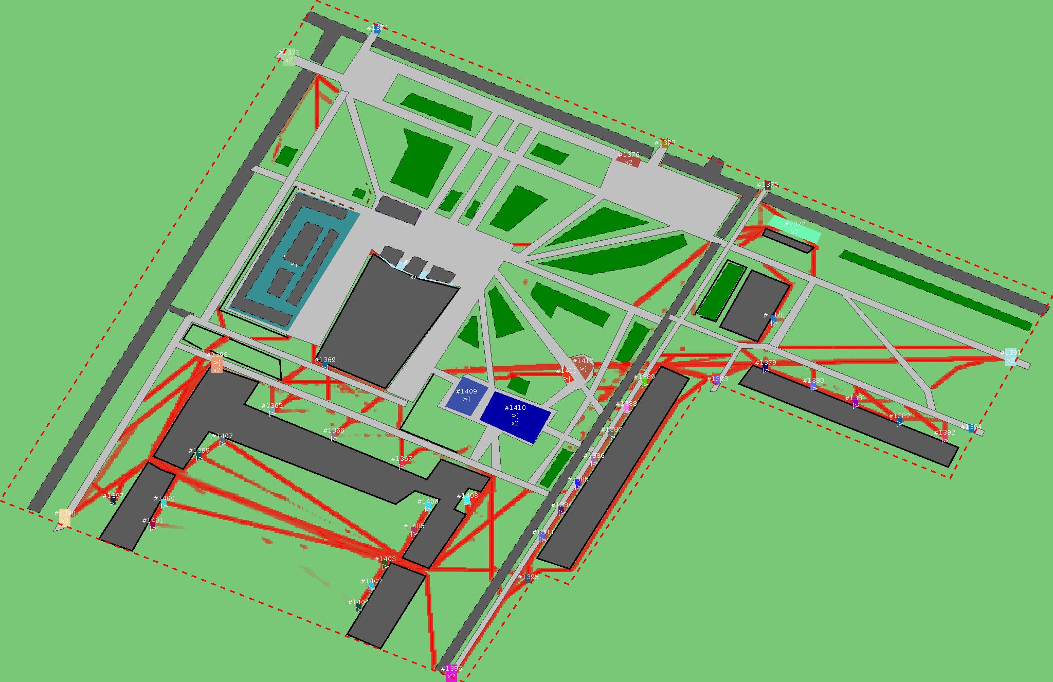 Красным цветом показаны места, где, вероятнее всего, появятся стихийные тропы..