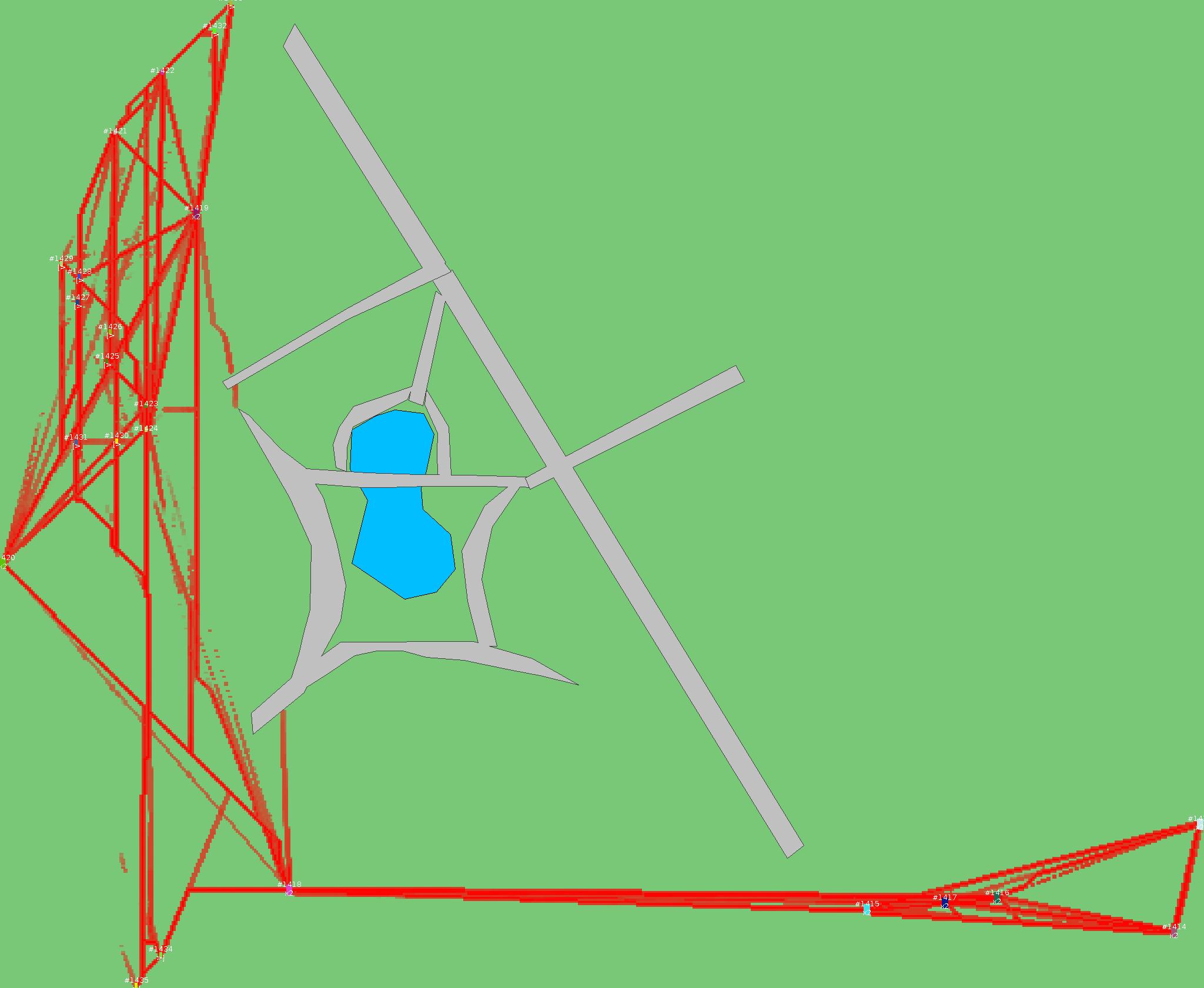 Красным цветом показаны места, где, вероятнее всего, появятся стихийные тропы..