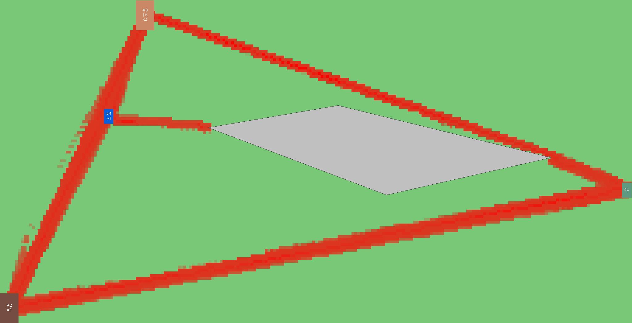 Красным цветом показаны места, где, вероятнее всего, появятся стихийные тропы..