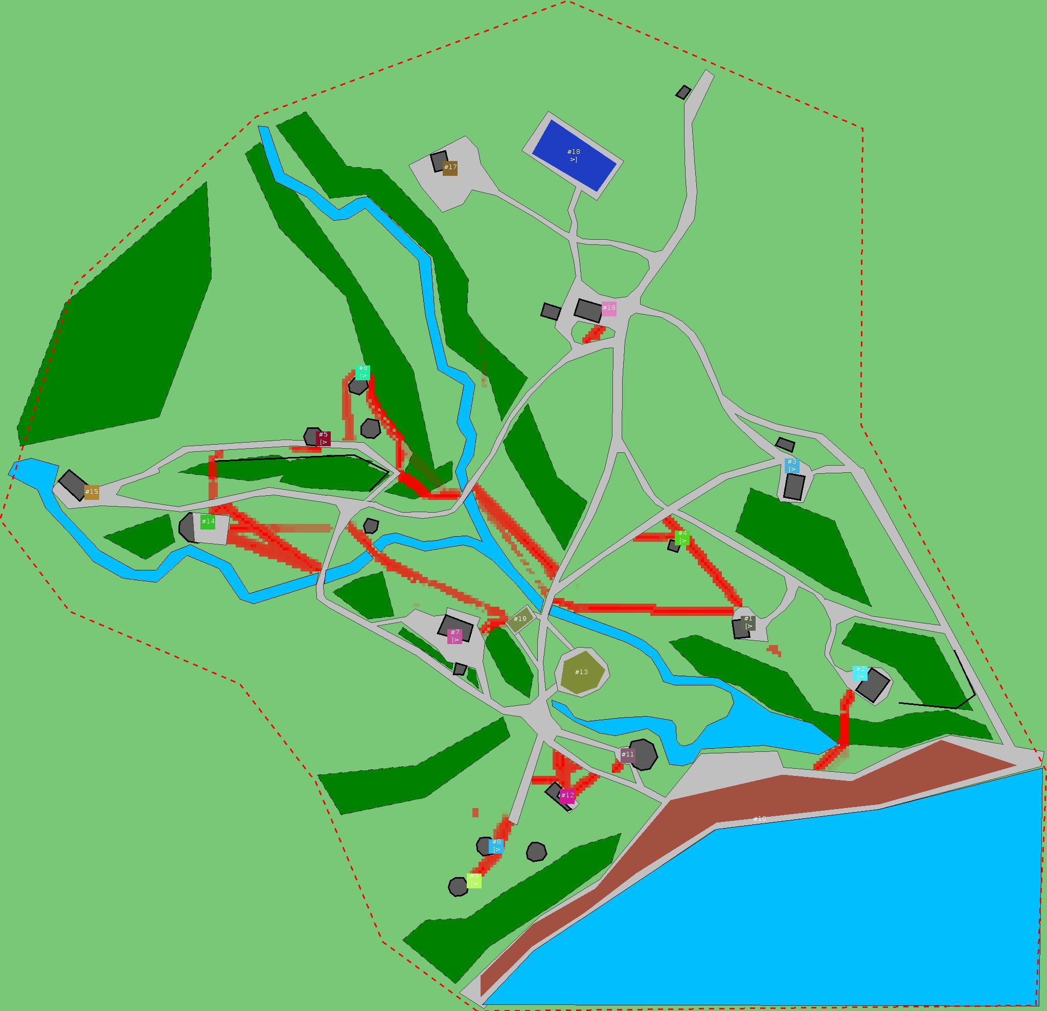 Красным цветом показаны места, где, вероятнее всего, появятся стихийные тропы..