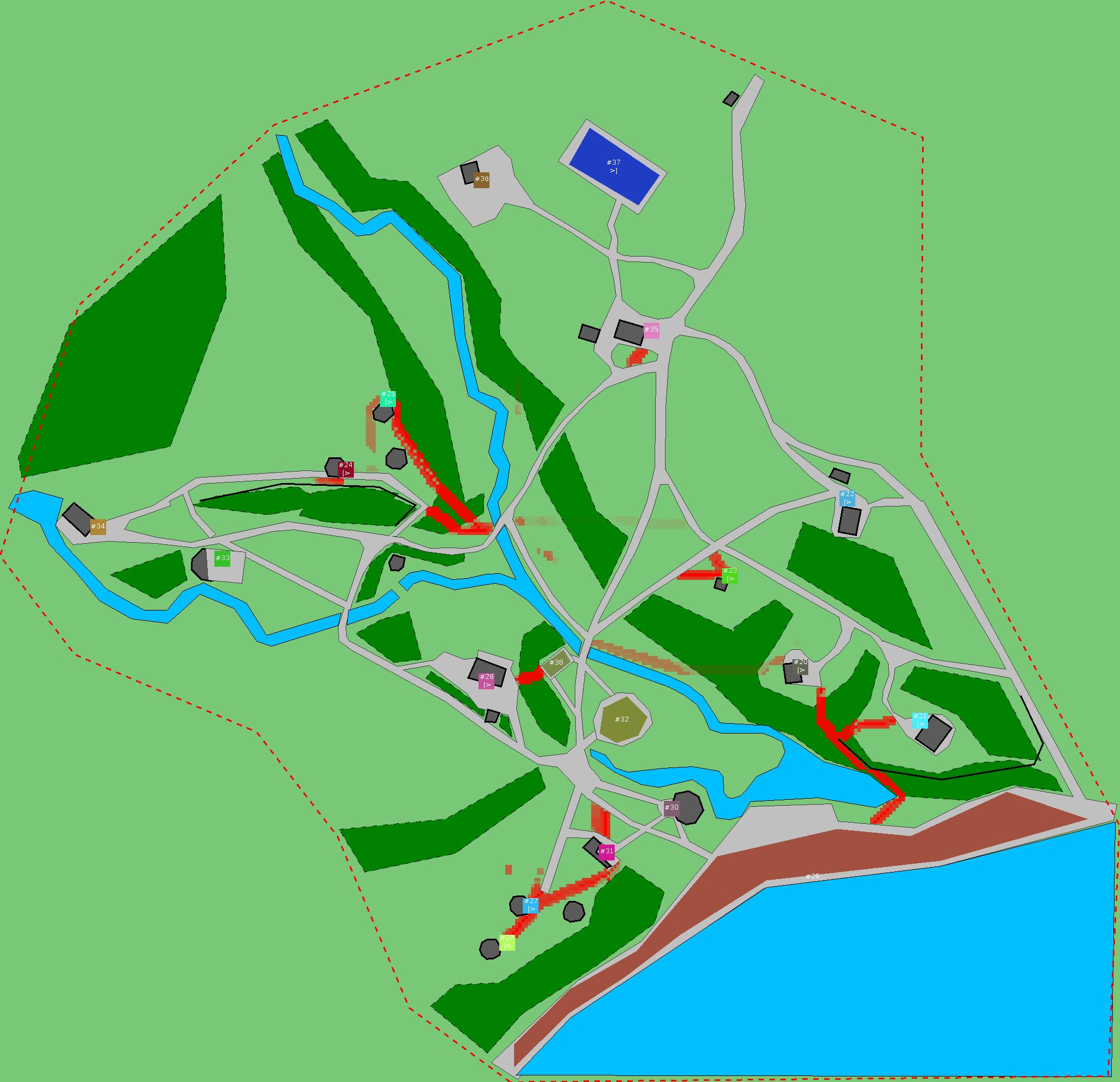 Красным цветом показаны места, где, вероятнее всего, появятся стихийные тропы..