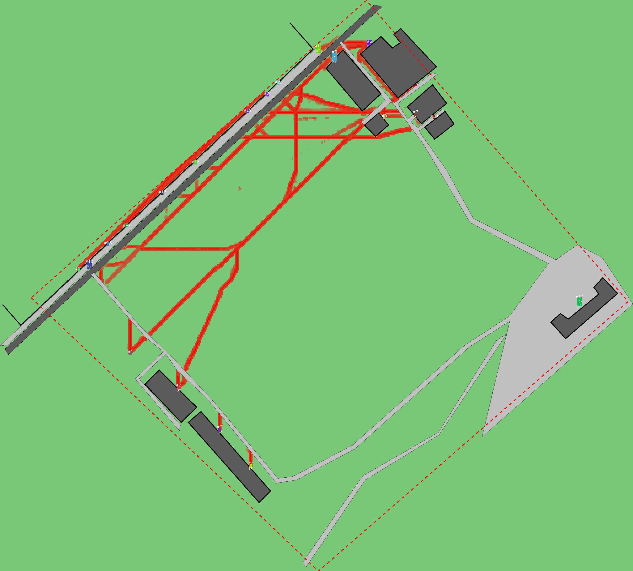 Красным цветом показаны места, где, вероятнее всего, появятся стихийные тропы..