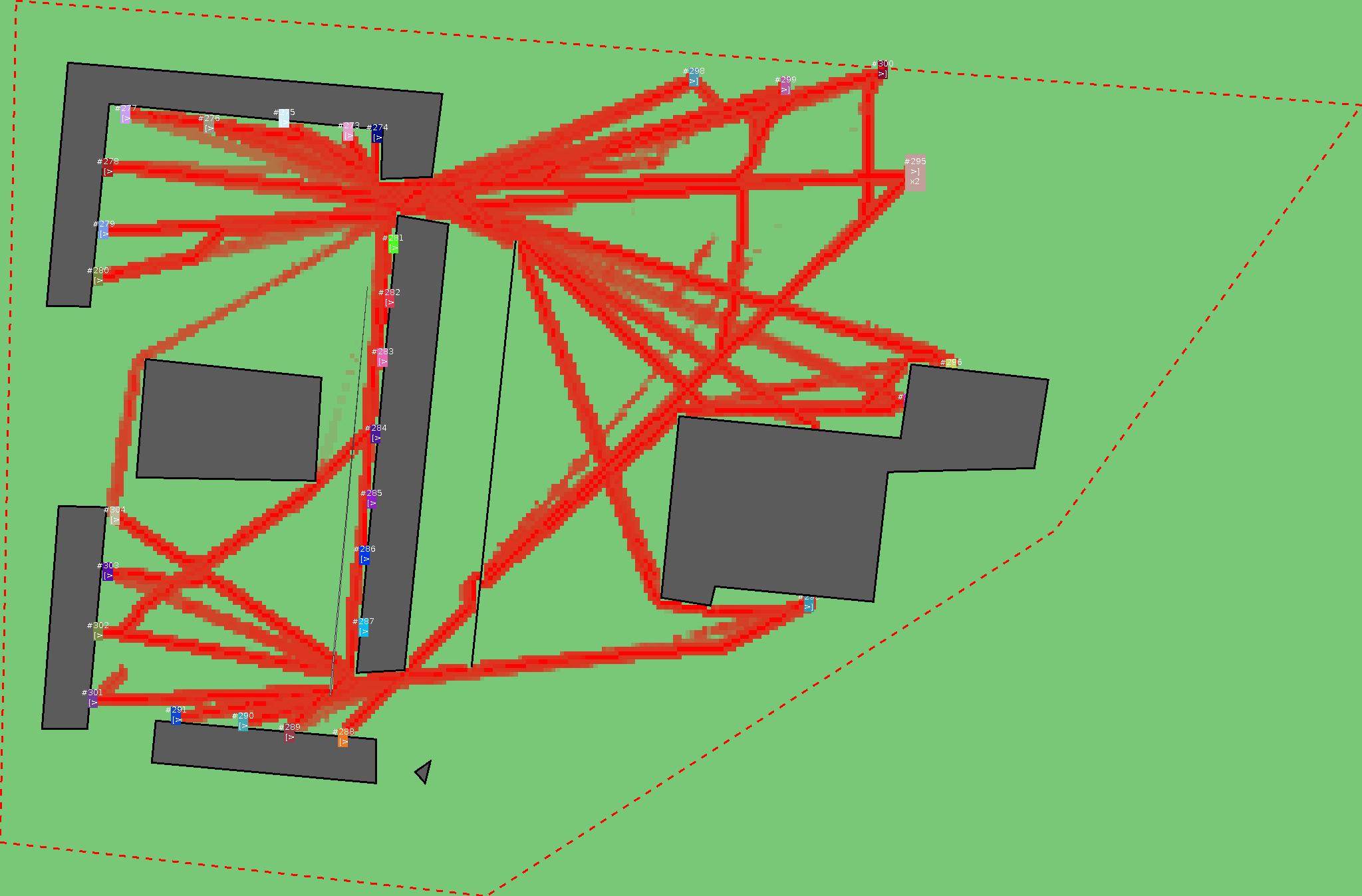 Красным цветом показаны места, где, вероятнее всего, появятся стихийные тропы..