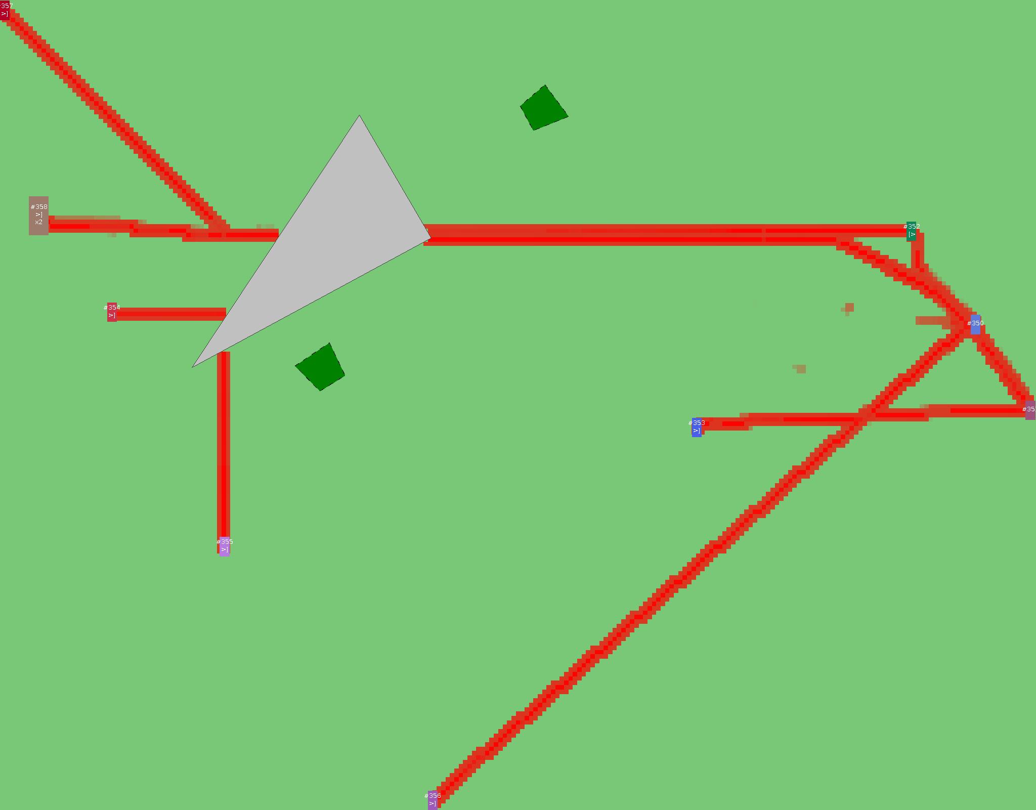 Красным цветом показаны места, где, вероятнее всего, появятся стихийные тропы..