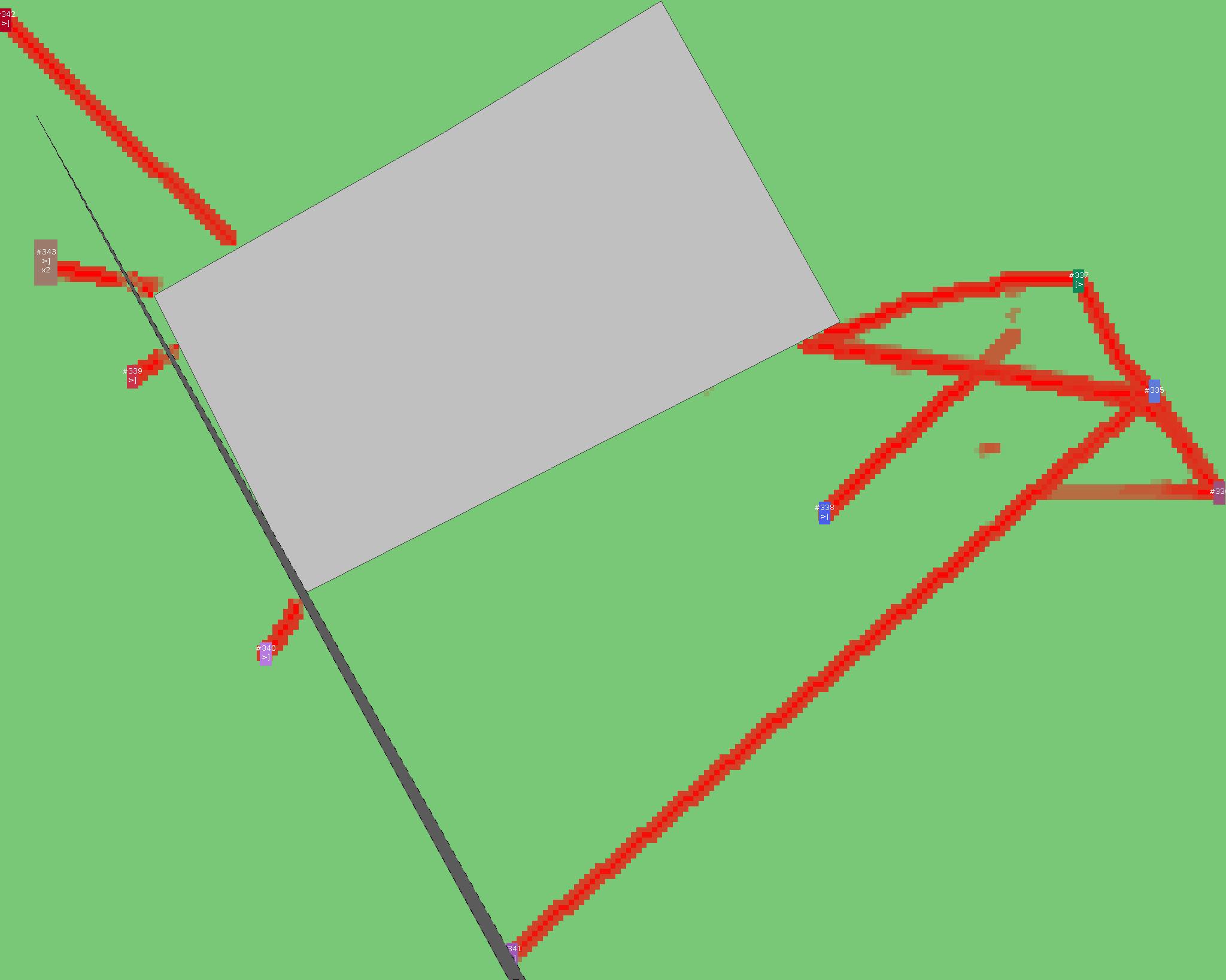 Красным цветом показаны места, где, вероятнее всего, появятся стихийные тропы..