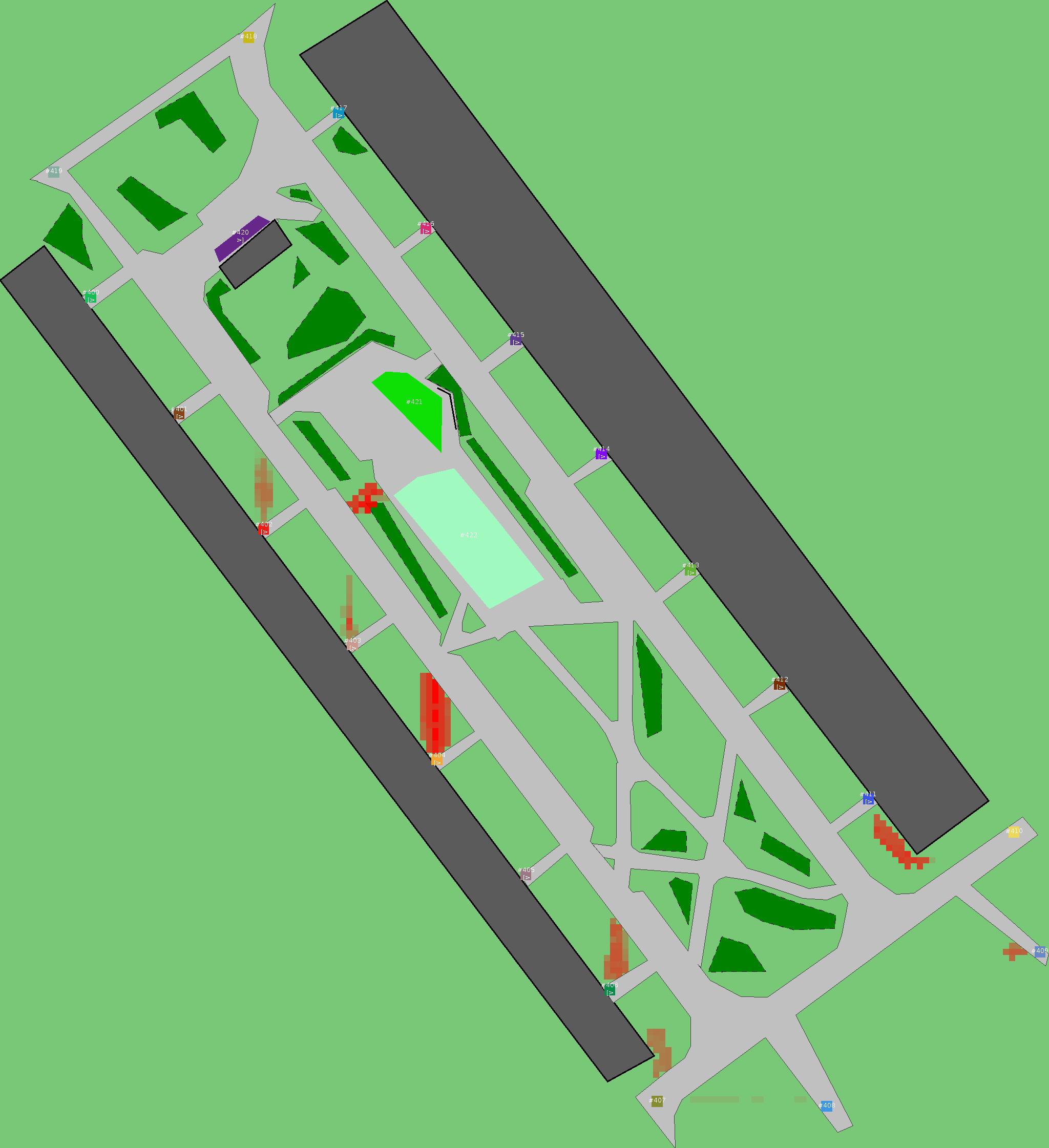 Красным цветом показаны места, где, вероятнее всего, появятся стихийные тропы..