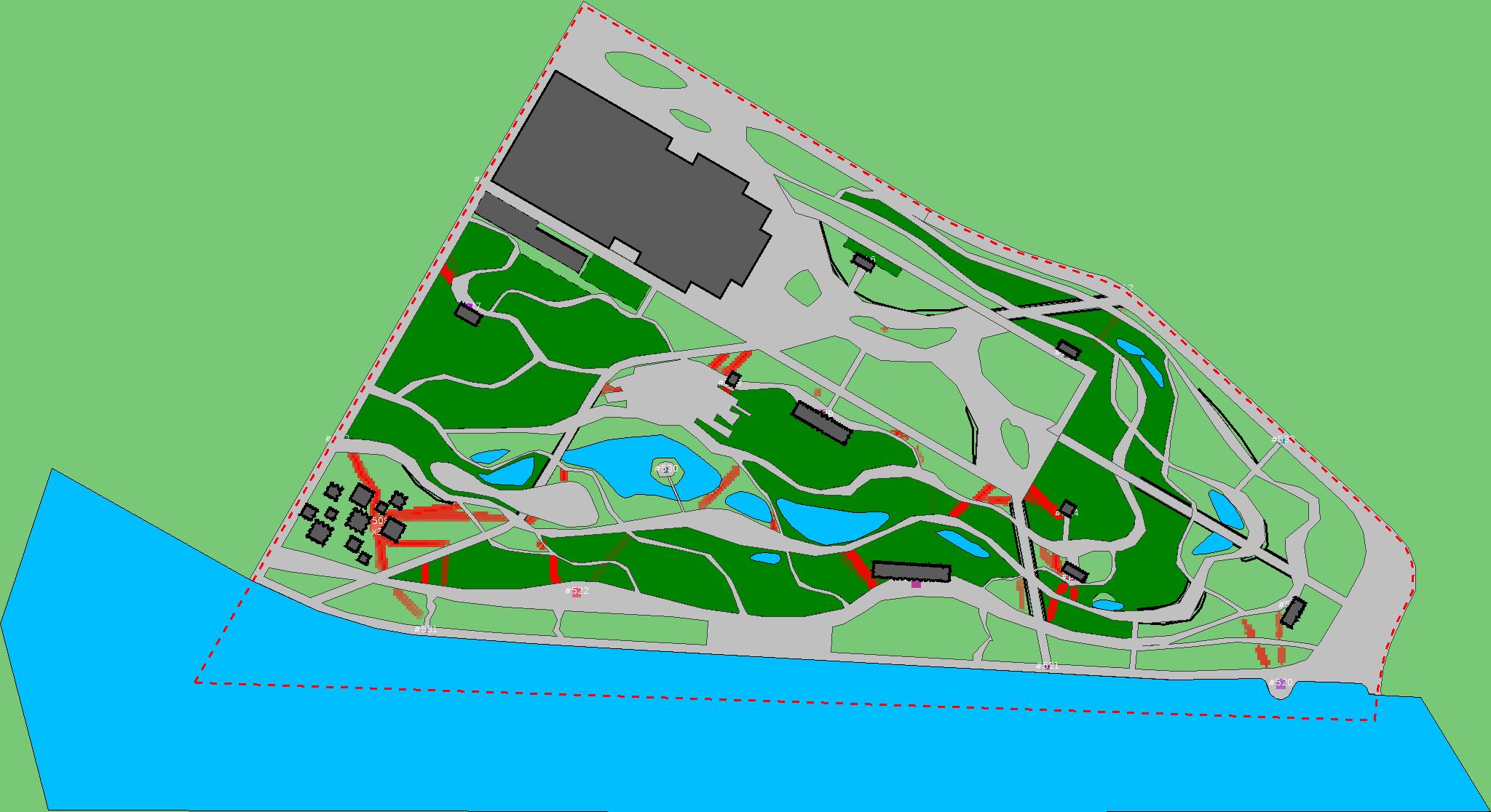Красным цветом показаны места, где, вероятнее всего, появятся стихийные тропы..