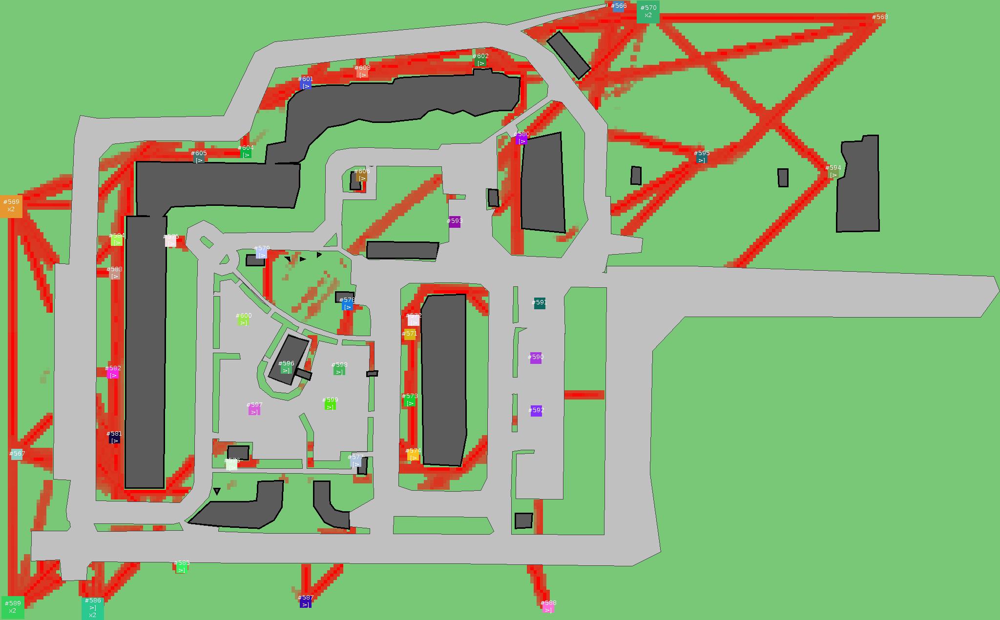 Красным цветом показаны места, где, вероятнее всего, появятся стихийные тропы..