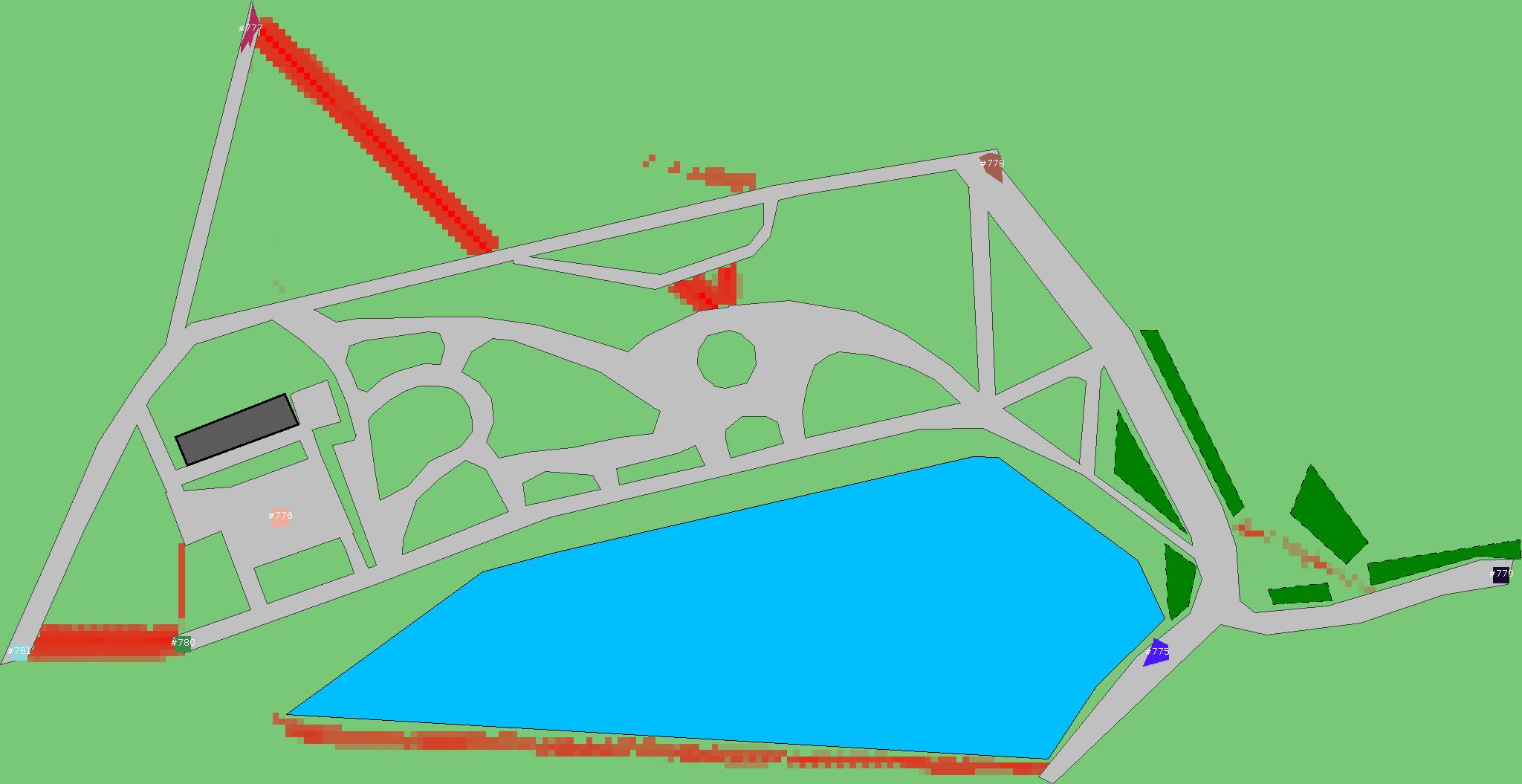 Красным цветом показаны места, где, вероятнее всего, появятся стихийные тропы..