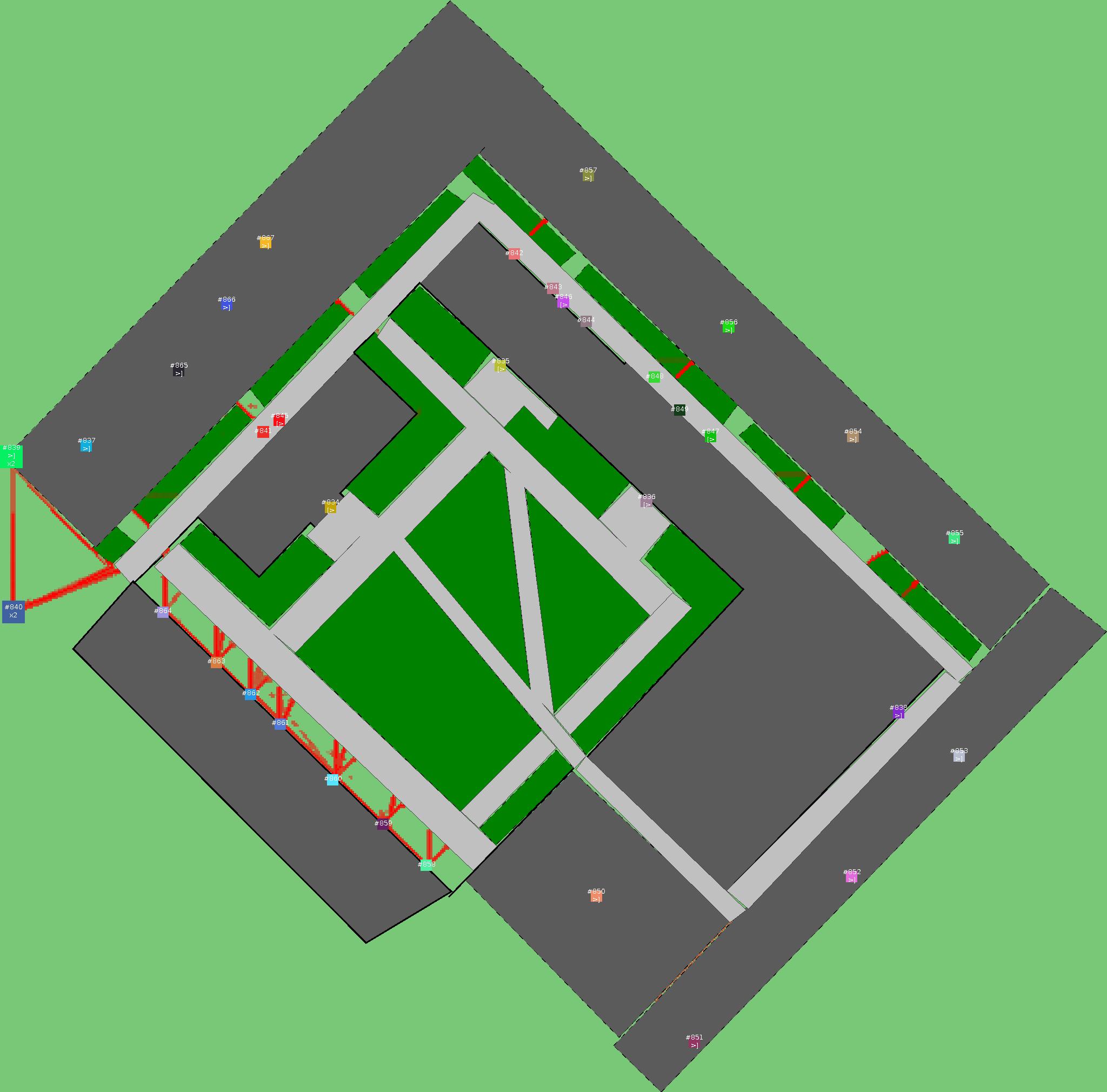 Красным цветом показаны места, где, вероятнее всего, появятся стихийные тропы..