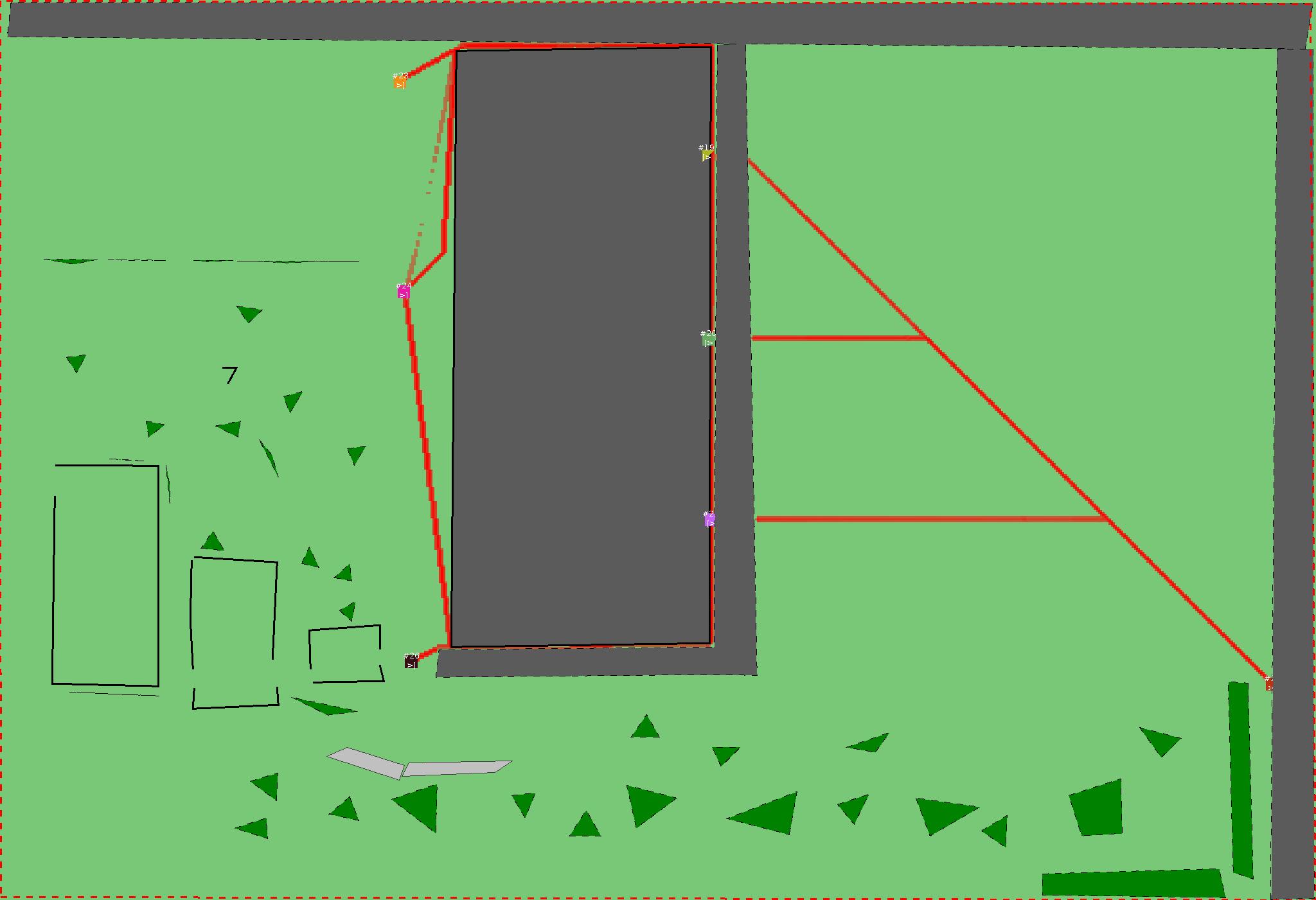 Красным цветом показаны места, где, вероятнее всего, появятся стихийные тропы..