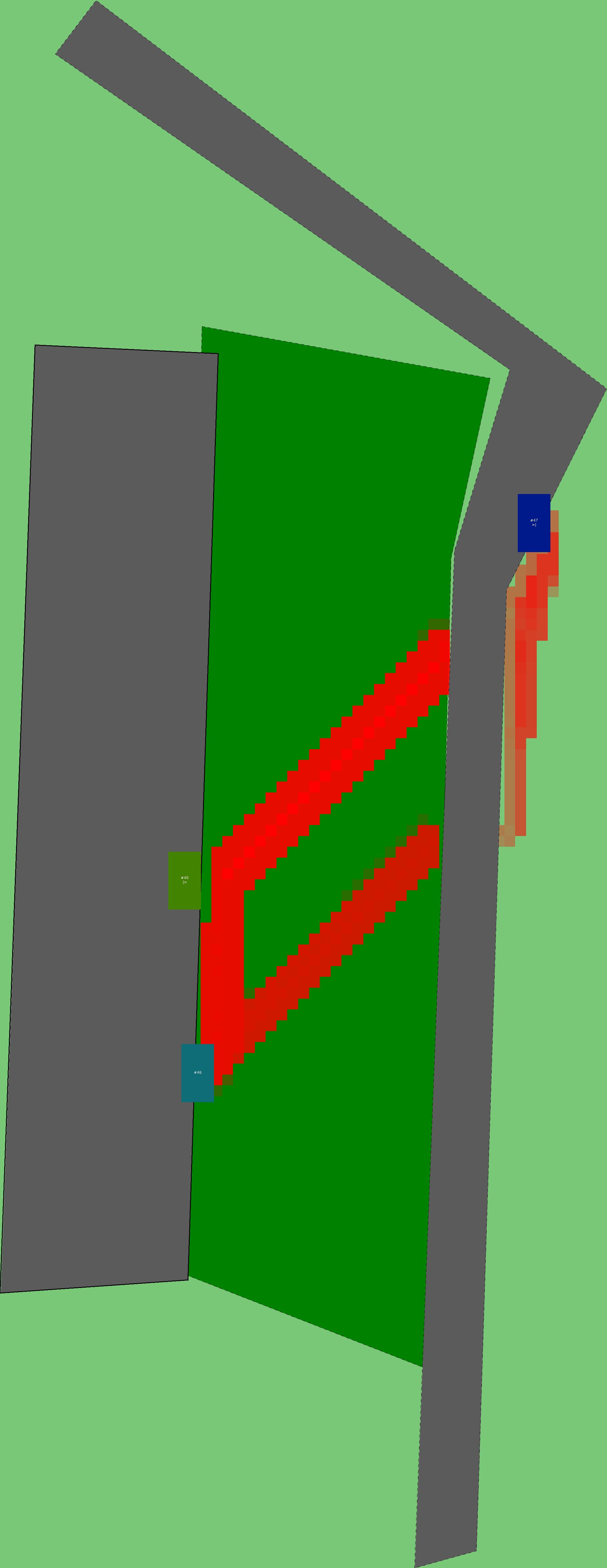 Красным цветом показаны места, где, вероятнее всего, появятся стихийные тропы..