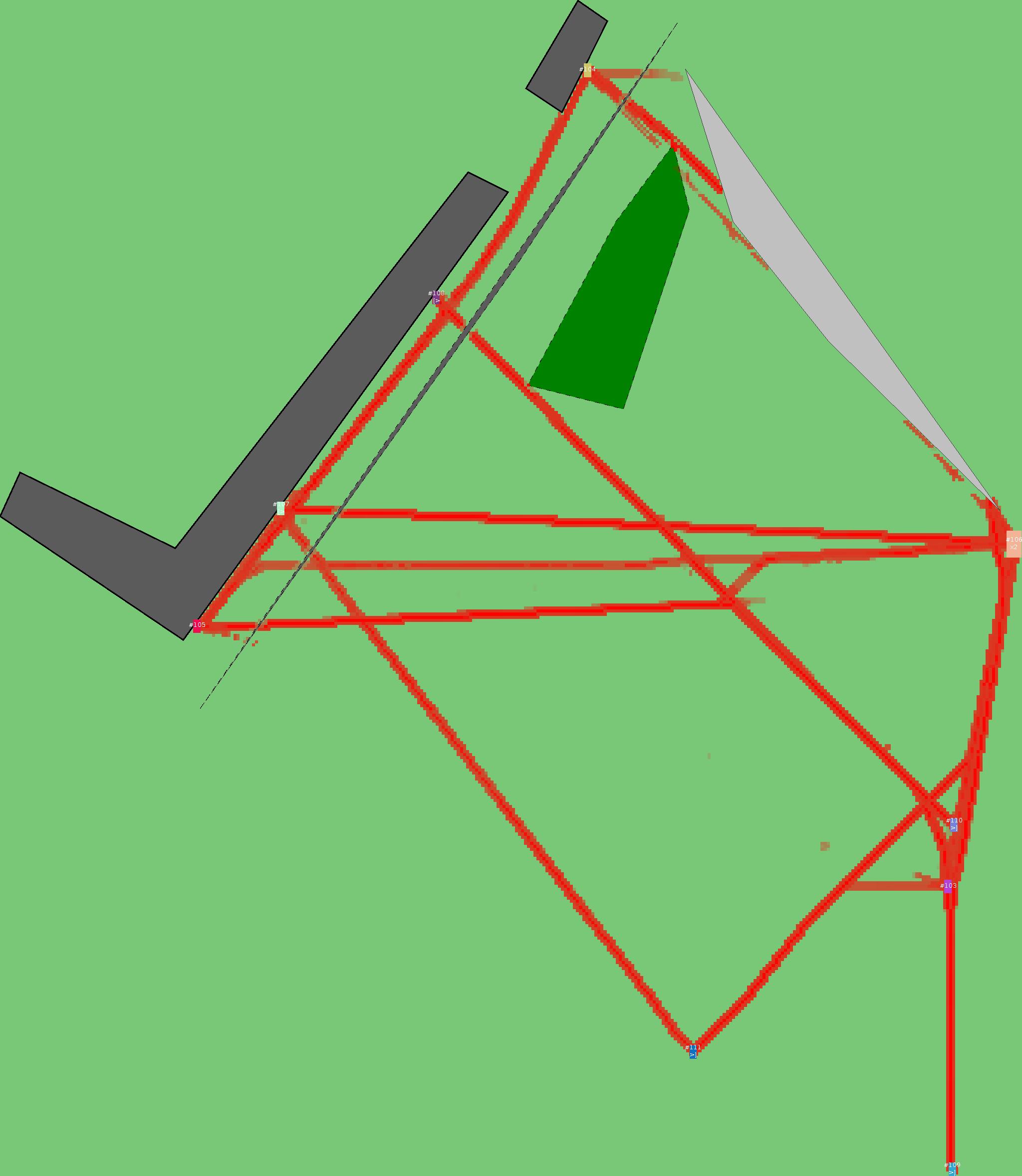 Красным цветом показаны места, где, вероятнее всего, появятся стихийные тропы..