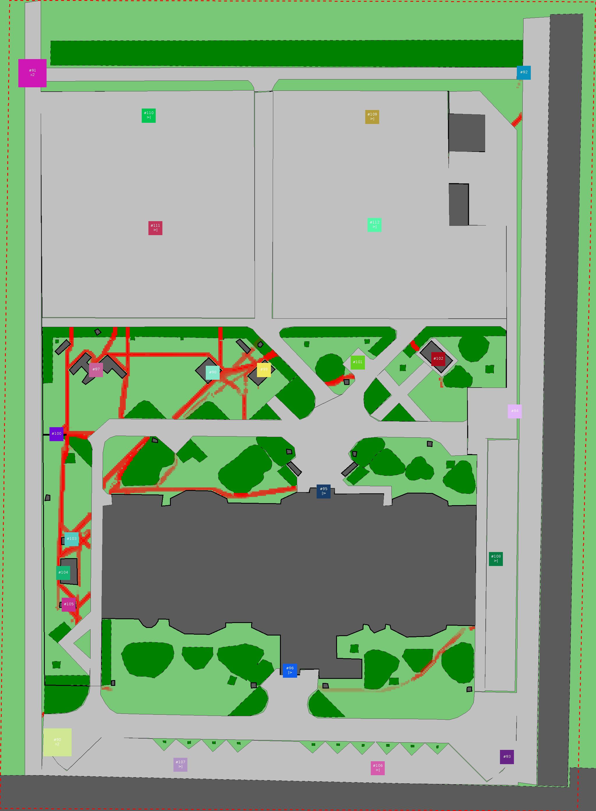 Красным цветом показаны места, где, вероятнее всего, появятся стихийные тропы..