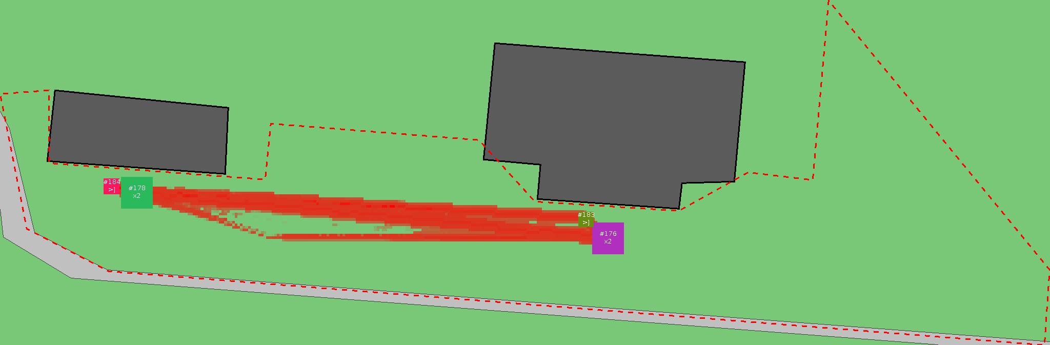 Красным цветом показаны места, где, вероятнее всего, появятся стихийные тропы..