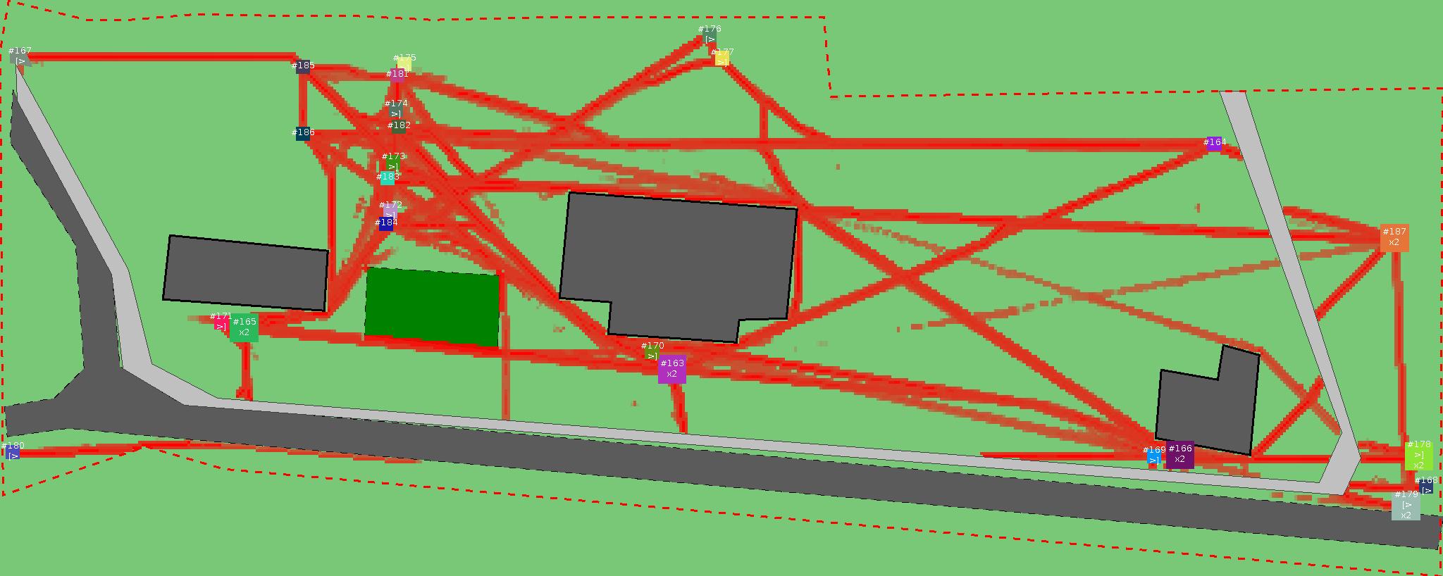 Красным цветом показаны места, где, вероятнее всего, появятся стихийные тропы..