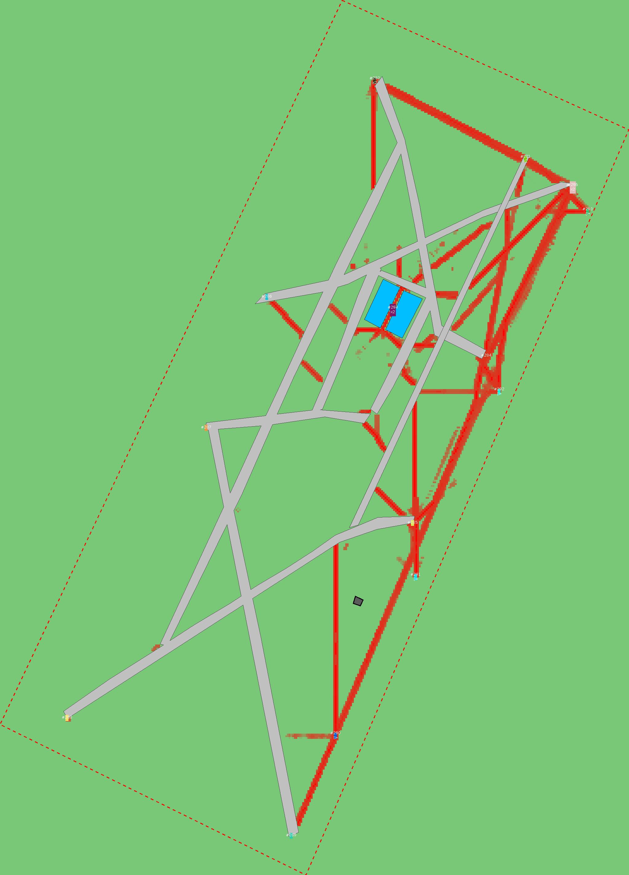 Красным цветом показаны места, где, вероятнее всего, появятся стихийные тропы..