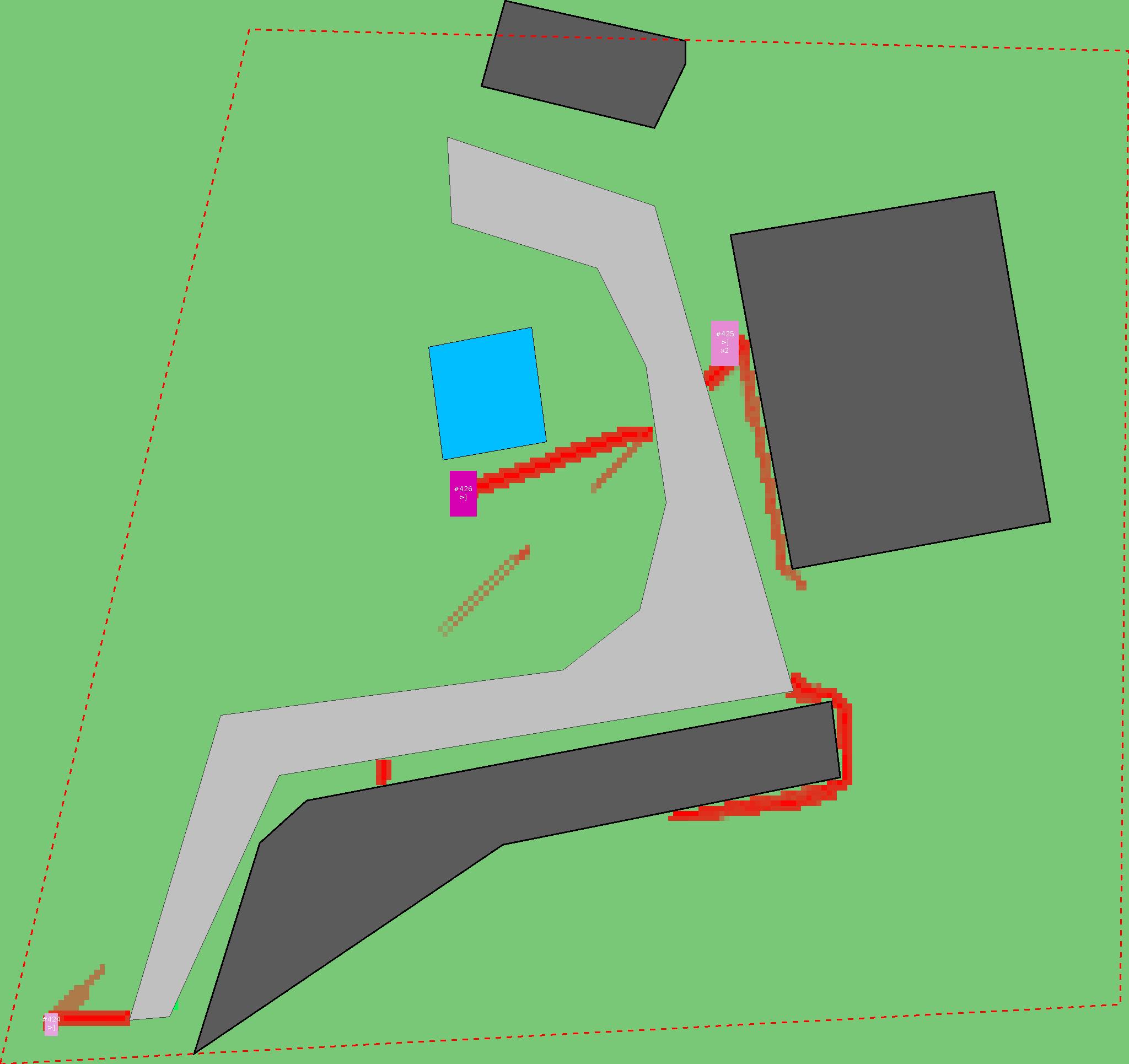 Красным цветом показаны места, где, вероятнее всего, появятся стихийные тропы..