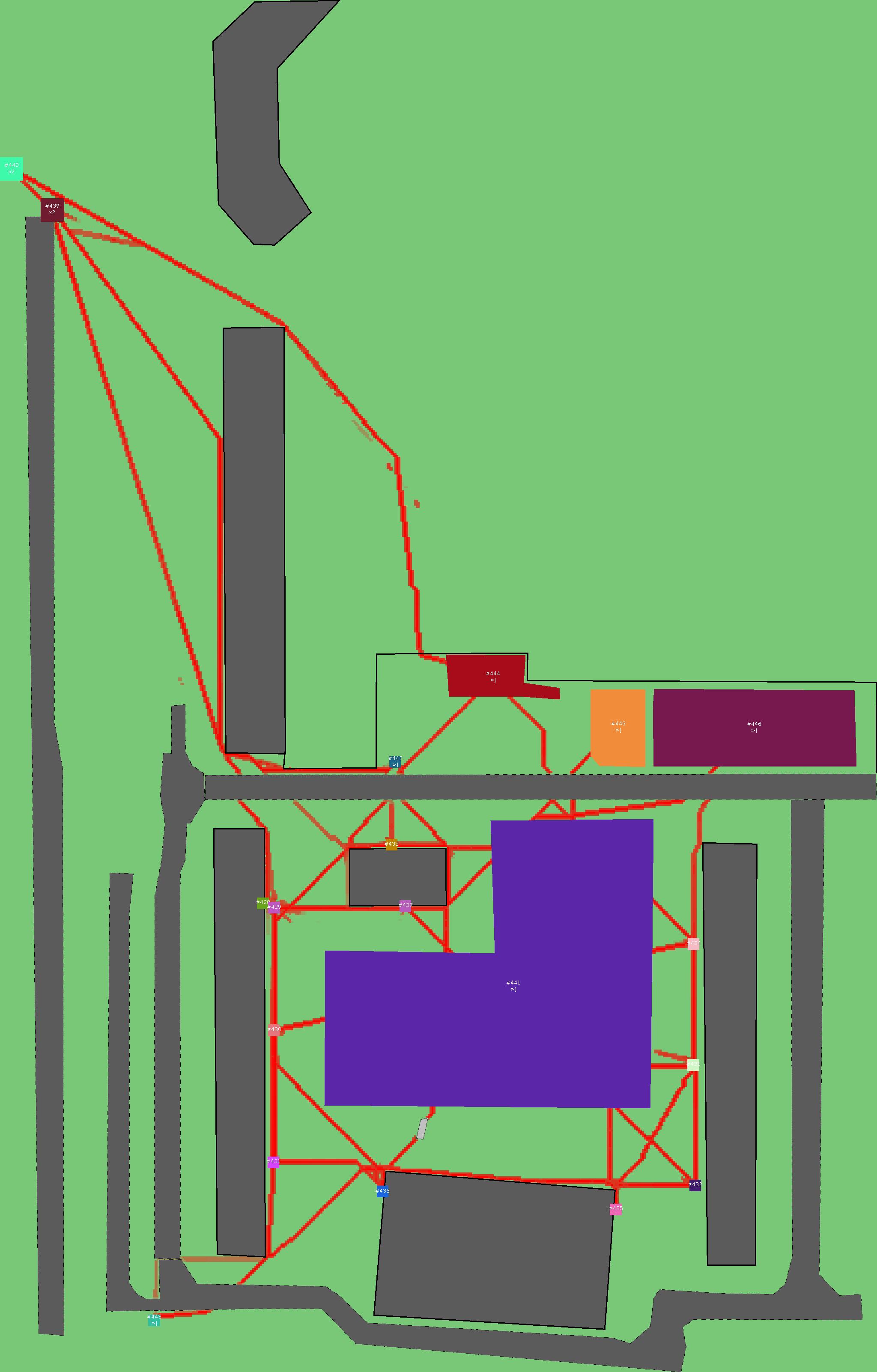Красным цветом показаны места, где, вероятнее всего, появятся стихийные тропы..