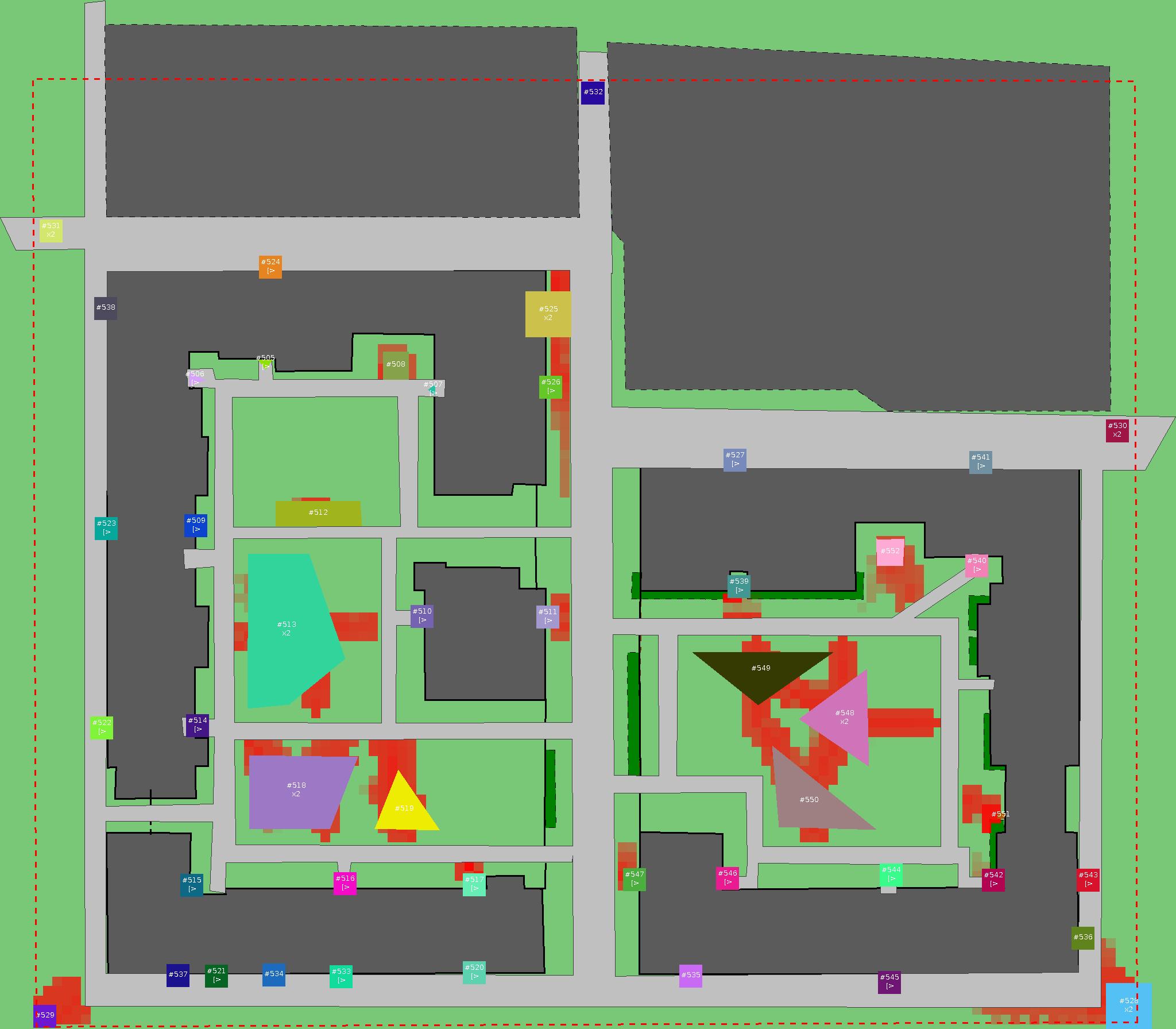 Красным цветом показаны места, где, вероятнее всего, появятся стихийные тропы..