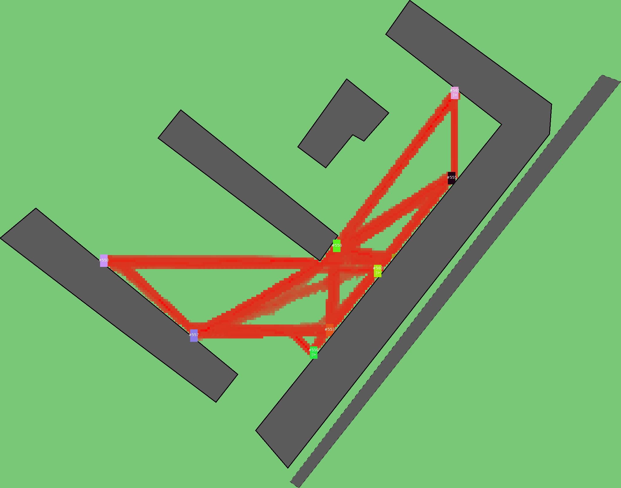 Красным цветом показаны места, где, вероятнее всего, появятся стихийные тропы..